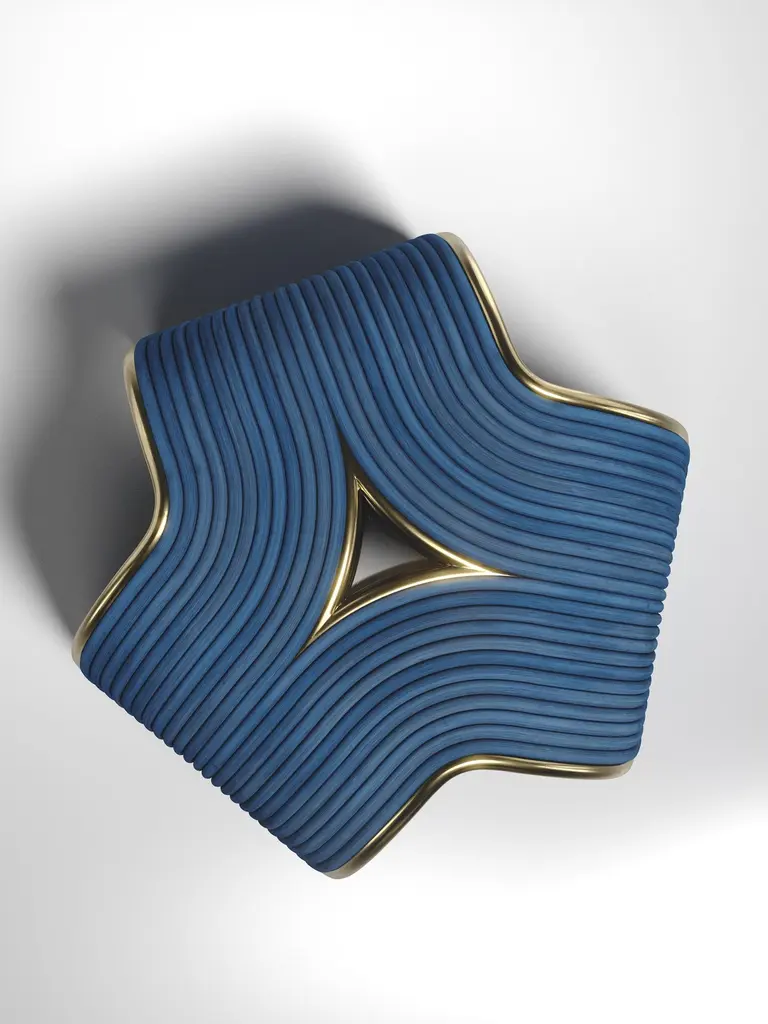 The Paris based label has distinguished themselves since their launch, with their iconic use of shagreen mixed with brass and other exotic materials. All furniture is handcrafted by skilled artisans, ultimately making each piece unique, designed in Paris and produced in the Philippines.The Licol Stool by R & Y Augousti is a part of their new Rattan capsule launch. The piece explores the brand's iconic DNA of bringing old world artisanal craft into a contemporary and utterly luxury feel. This stool is done in a blue rattan finish, with bronze patina brass details. Available in other finishes. Part of the Augousti Rattan capsule, see images of the collection at end of slide. Custom sizing/finishing on request.Design SKU reference: DY65The dimensions of this piece are:51.5 x 59.1 x 49.2 cmAll R & Y Augousti pieces are handmade by artisans, ultimately making each piece unique.Acclaimed design duo Ria & Yiouri Augousti have established themselves since the 1990s as pioneers of modern-vintage style through their luxurious Art Deco inspired collections.The Paris based label has distinguished themselves since their launch, with their iconic use of shagreen mixed with brass and other exotic materials. All furniture is handcrafted by skilled artisans, ultimately making each piece unique. All shagreen-covered items should be kept out of direct sunlight, color variants may occur on the stingray and other exotic finishes, but this showcases the Parisian label's commitment to creating authentic luxurious products using natural components.Wipe clean with soft dry cloth.