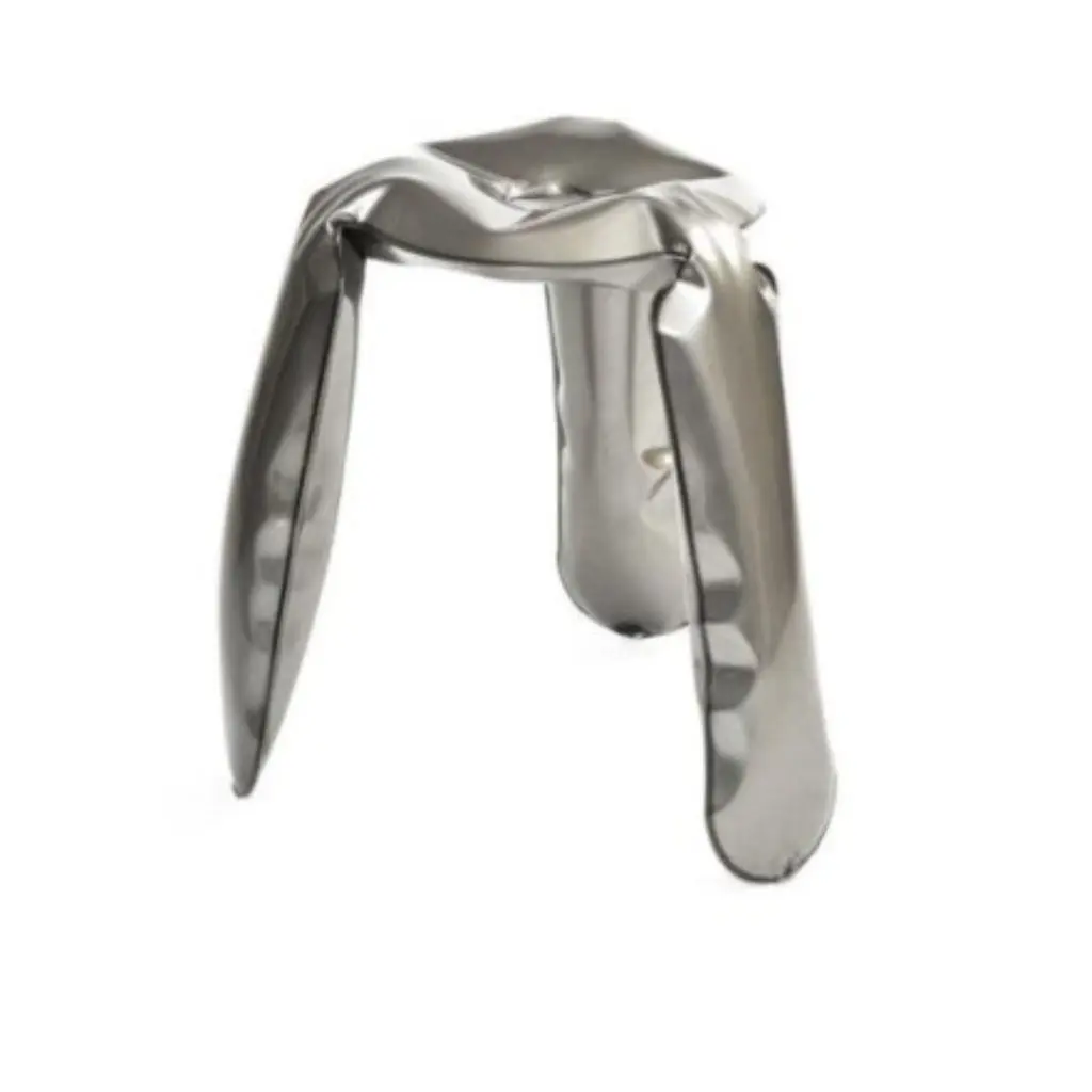 Raw steel standard Plopp stool by ZietaDimensions: D 35 x H 50 cm Material: Carbon steel. Finish: Lacquered.Available in colors: Graphite, moss grey, umbra grey, beige grey, blue grey. Available in stainless steel, aluminum, and carbon steel. Also available in standard, kitchen, and bar sizes. PLOPP stool is an icon and a bestseller of Zieta Studio. It is not only ordinary seating – its intriguing form defies the rules of geometry and contains the history of Oskar Zieta’s research on the properties and possibilities of metal. PLOPP, or “Polish folk air-pumped object”, is material proof that the creative and artistic aspect of design can be included in a highly advanced engineering form.The unique, toy-looking, and playful shape of PLOPP is an effect of an innovative forming method – FIDU technology. Forms made in FIDU are very light but also very durable. Since it was introduced to the market in 2010, it had already won such prestigious awards as the Red Dot Design Award 2008, the German Design Council Award 2008 and the Forum AID Award 2009.PLOPP Standard Aluminium features stools made of lightweight, eco-friendly material and is available in several finishes.PLOPP is also available in various sizes: PLOPP Mini, PLOPP Standard, PLOPP Kitchen, and PLOPP Bar.About Zieta: Zietas main goal is to deliver uniqueness and customization in design and construction while keeping the production, transport, and warehousing innovatively efficient.This is how they imagine the future world: Light, durable structures of customized applications produced on demand out of one-of-a-kind parts, yet efficiently.They use a computer-controlled production process. Customized pattern, customized form, customized function, one-of-a-kind product, and outstanding precision are what they deliver.You will find all of this philosophy reflected in the products. The research, they discover new possibilities, they play with forms and they deliver a beautiful, innovative, surprising outcome to people who love the design and who care about design development.They believe their work is a valuable contribution to the world of design not only by the unique beauty of the forms but most of all by opening ultra-innovative opportunities of forming and new paths for the world of the future.