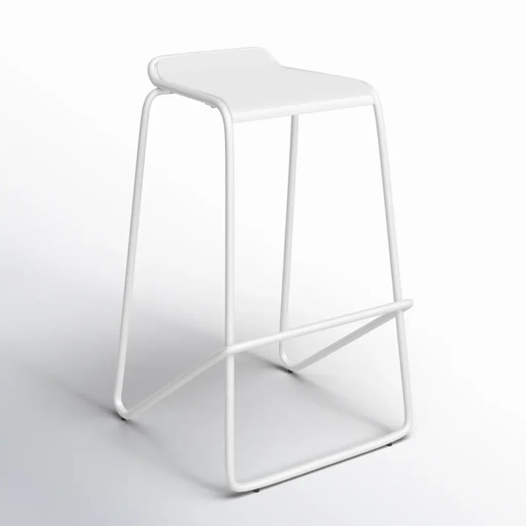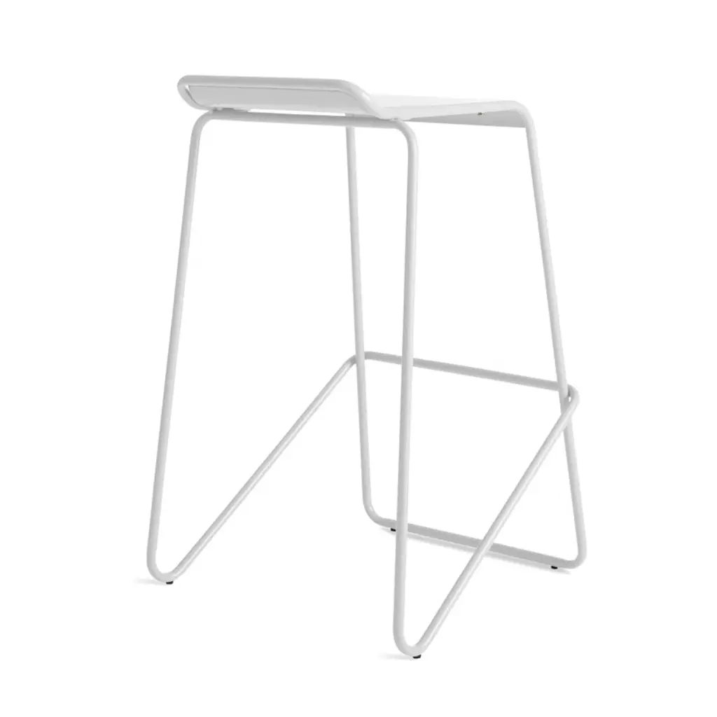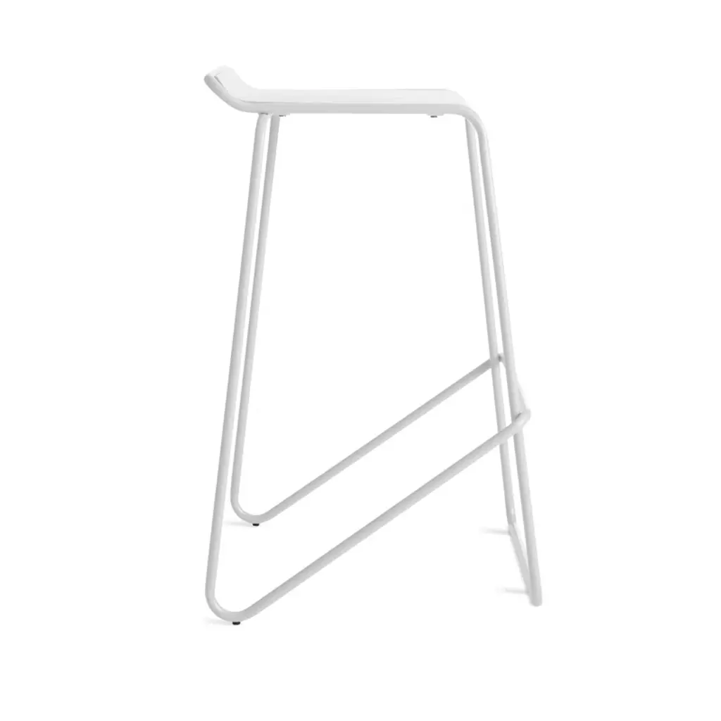 A stackable stool with powder-coated steel sled legs and a molded plywood seat makes for a friendly contract solution or a perfect everyday perch.