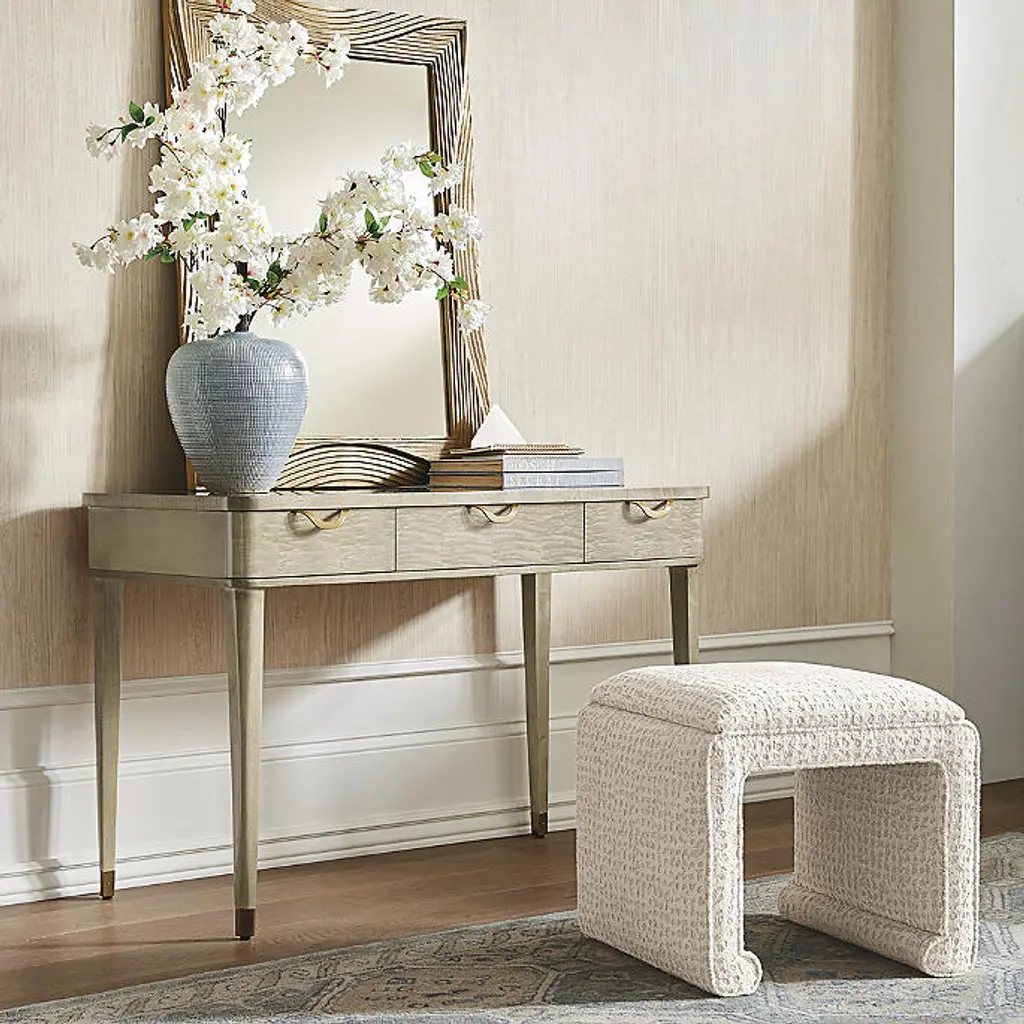Whether used as a footrest, extra seat or side table, this open cubic form is a canvas for your expression. Our Reba Accent Stool is handcrafted in the USA and upholstered in your choice of more than 150 premium options. Webbed construction with poly-Dacron foam Fully upholstered Choose from more than 150 fabrics in the Premium Upholstery Collection Velvet naturally ages over time, resulting in light marks or bruising that add to its character and sheen Performance fabric resists stains and repels water and oils, ensuring easy cleaning Leather is a natural material, retaining character marks and subtle shade variations; no two pieces are exactly alike Performance leather is treated to reduce scratching, fading, staining and color variation On leather option, velvet decking and cushion underside allow air to flow from the cushion through the decking Self-welting Plastic nonmarring floor glides Levelers included Handcrafted in USA At Frontgate, our primary focus is quality. We guarantee that every product we sell will stand up to the supreme test – our customers' satisfaction. To learn more about our policies, visit our Shipping & Processing, Returns & Exchanges and Warranty & Price Guarantee pages. Whether used as a footrest, extra seat or side table, this open cubic form is a canvas for your expression. Our Reba Accent Stool is handcrafted in the USA and upholstered in your choice of more than 150 premium options. Webbed construction with poly-Dacron foam Fully upholstered Choose from more than 150 fabrics in the Premium Upholstery Collection Velvet naturally ages over time, resulting in light marks or bruising that add to its character and sheen Performance fabric resists stains and repels water and oils, ensuring easy cleaning Leather is a natural material, retaining character marks and subtle shade variations; no two pieces are exactly alike Performance leather is treated to reduce scratching, fading, staining and color variation On leather option, velvet decking and cushion underside allow air to flow from the cushion through the decking Self-welting Plastic nonmarring floor glides Levelers included Handcrafted in USA At Frontgate, our primary focus is quality. We guarantee that every product we sell will stand up to the supreme test – our customers' satisfaction. To learn more about our policies, visit our Shipping & Processing, Returns & Exchanges and Warranty & Price Guarantee pages.