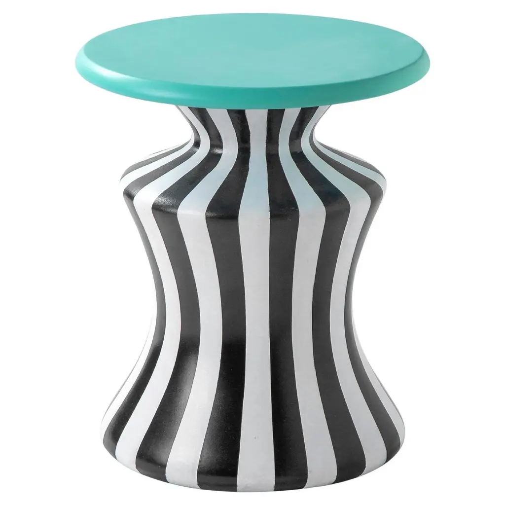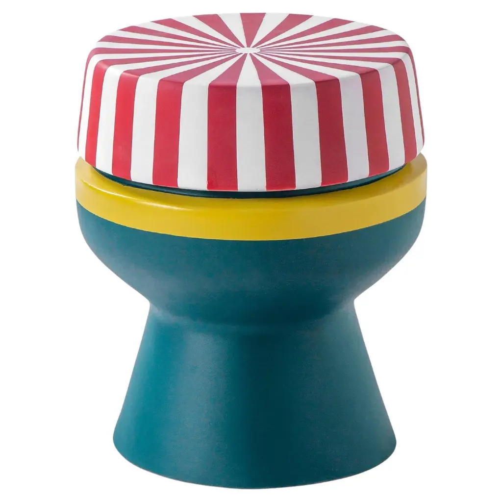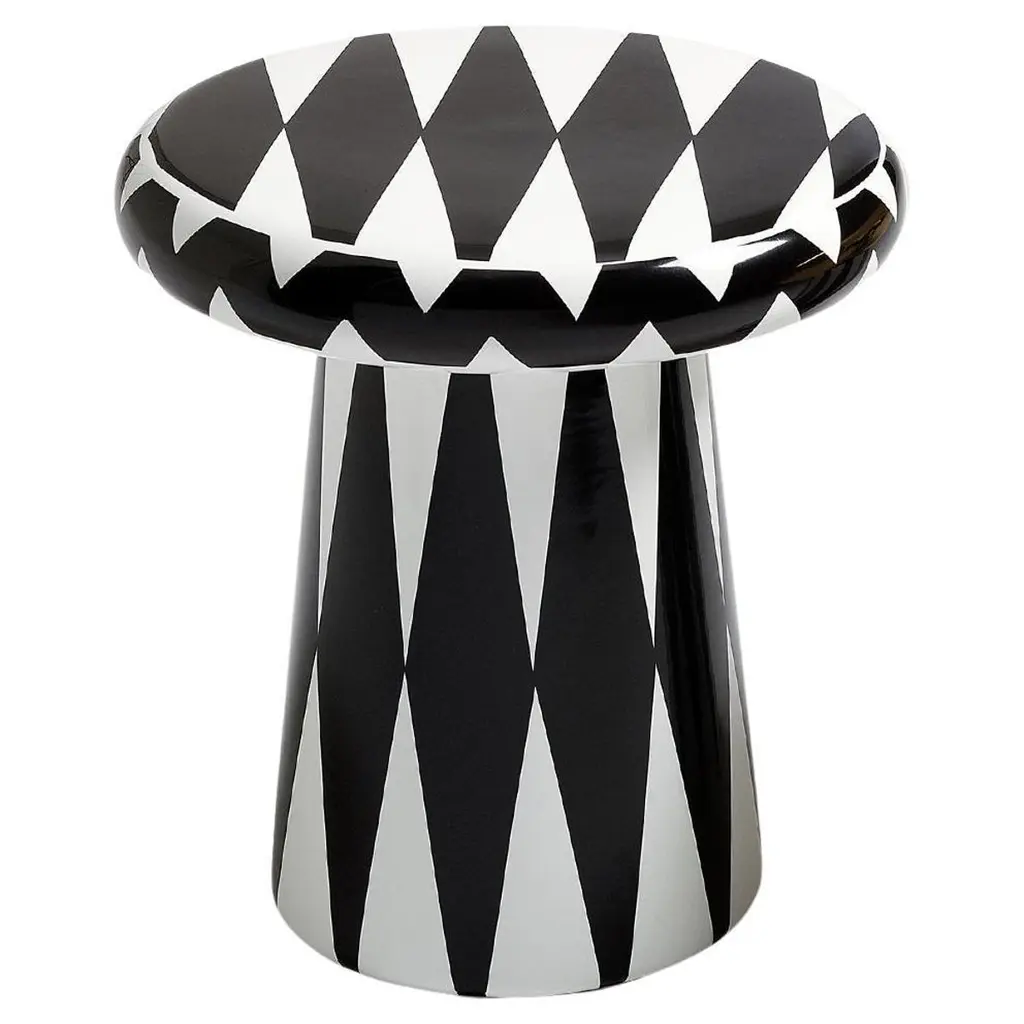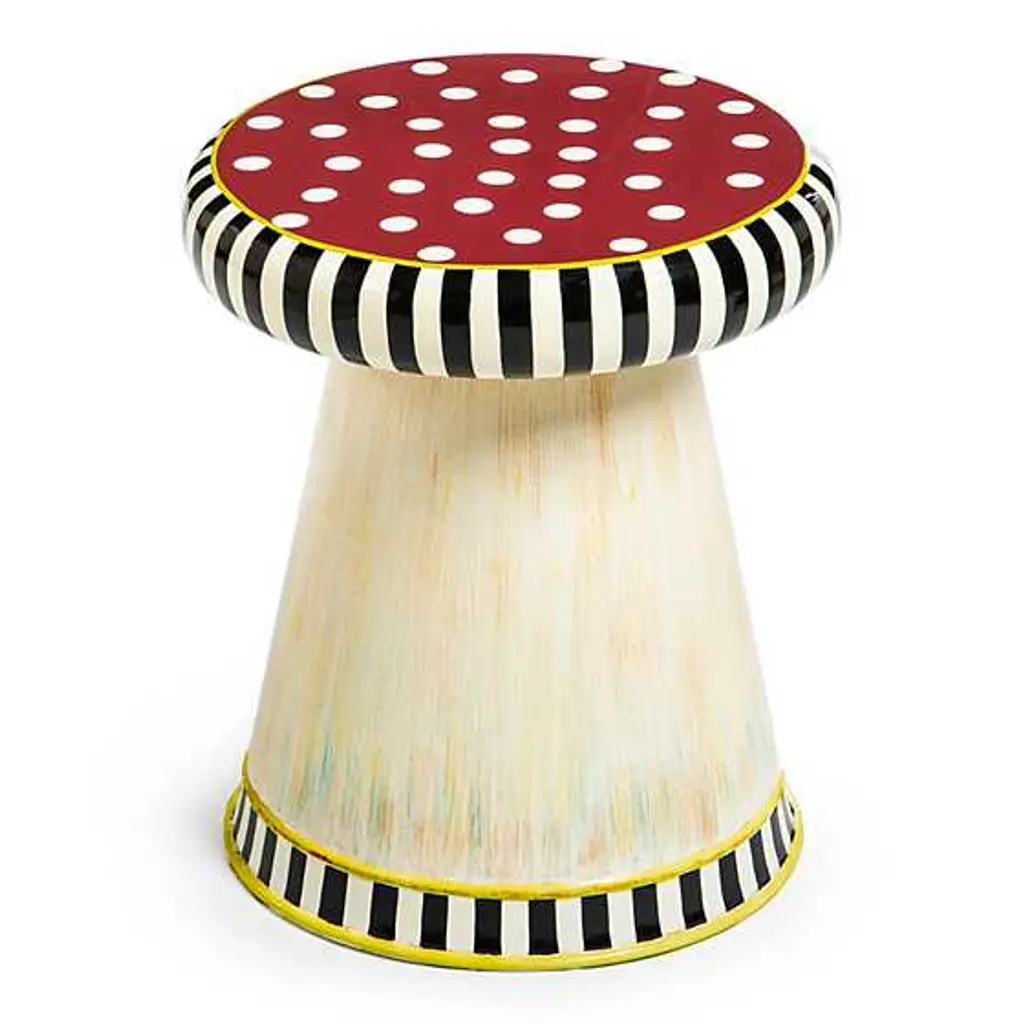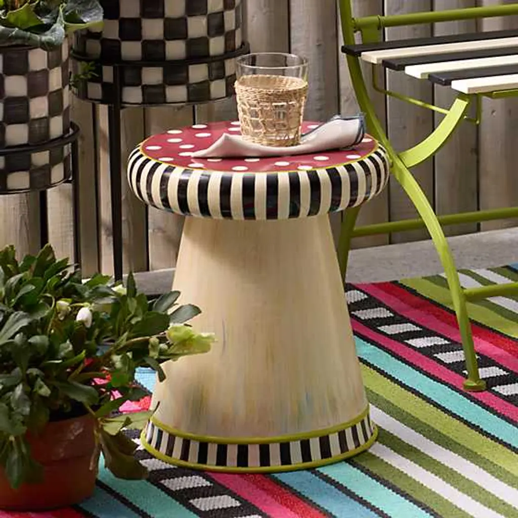 Make room for this small iron outdoor toadstool that’s hand-painted with a fresh-and-fun red polka dot pattern. It’s perfect as a side table, plant stand, or additional seating.