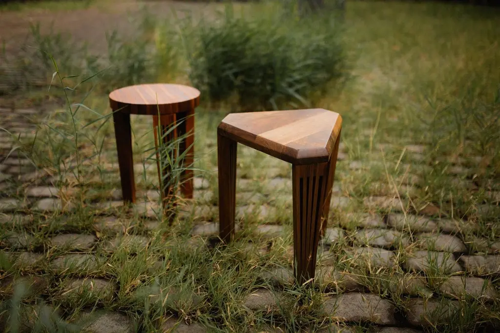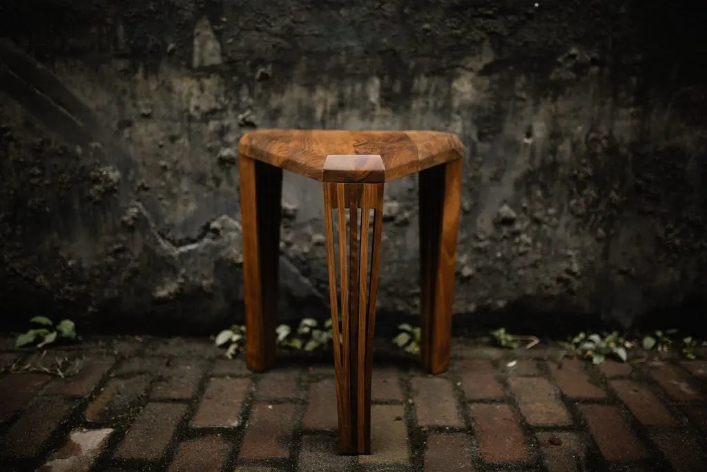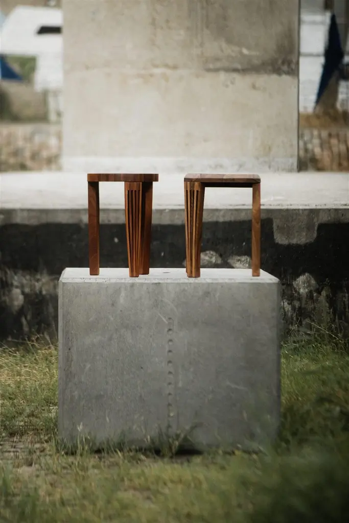 Redemption round stool by Albert Potgieter DesignsDimensions: H 45 x W 40 cmMaterials: Walnut and mahogony wood“Look and Feel designs”, this is the Tagline and the way of designing of Albert Potgieter. Albert was a qualified Physiotherapist in South Africa for 6 years before him and his wife moved to Rotterdam and started the business in 2017, but because of his background of Physiotherapy he continues to use the skills that he was taught (to look and feel) while designing his furniture pieces. The vision and dream of Albert Potgieter is to use the business and designing to have an impact on people’s lives. Helping others through design, craftmanship and through teaching those who didn’t have the same opportunities.
