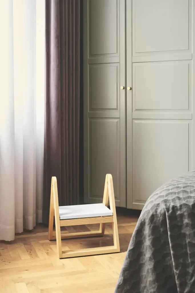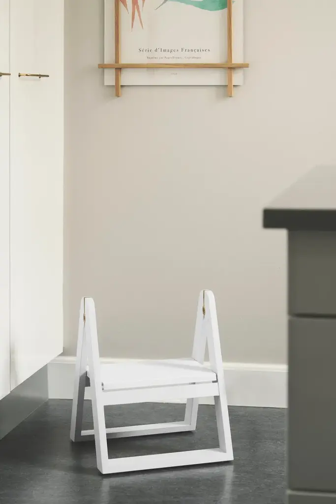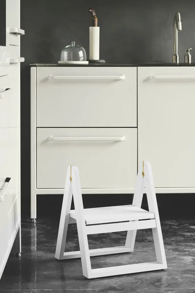 Reech is a timeless and multi-purpose stepladder that will make a positive functional and aesthetic addition to any home that appreciates durable quality design. The stepladder is practical, both in function and design, and is created to make everyday life easier and more beautiful.With its clean, stringent design, the stepladder will fit into many homes, and its aesthetic expression will add a decorative touch to many different rooms. Reech is ideal for helping you reach the top shelves in the kitchen, but it will also make a beautiful feature in the bedroom, in a corner of the living room with a plant on it or as a spare seat for guests. The stepladder can also be the children's best friend when they help in the kitchen.A small, almost invisible ball spring keeps the top step in place when the ladder is folded up and not in use. When it is time to use the stepladder it is unfolded most of the way, the top step is folded down, and the ladder is then fully unfolded so that the step locks into place in the frame.Reech comes with a practical bracket that lets you hang it on the wall or inside a closet. That way it can be tucked away out of sight when it is not in use without taking up any floor space. The wall bracket is hidden behind the top step, which almost gives the illusion that Reach is floating in the air, magically held in place against the wall.Available models:Black 20020Ash 20021White 20022