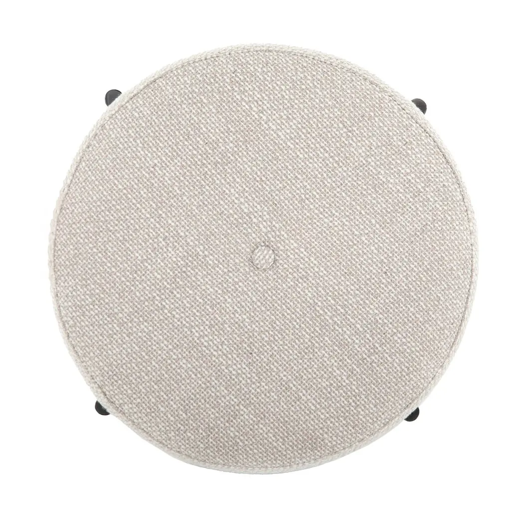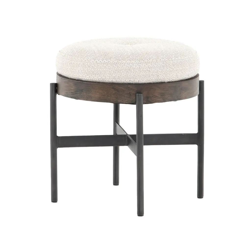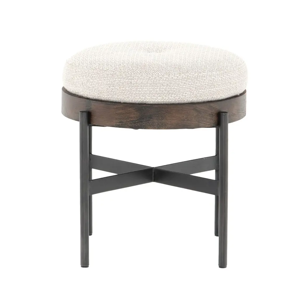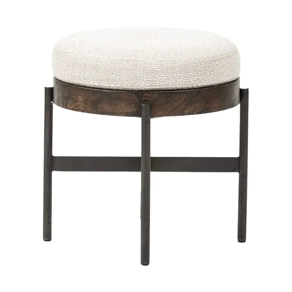 Stylish versatility defines this accent stool. An airy base of iron supports rounded beech wood with textural upholstery. Perfectly scaled for use as an end table or as quick extra seating.