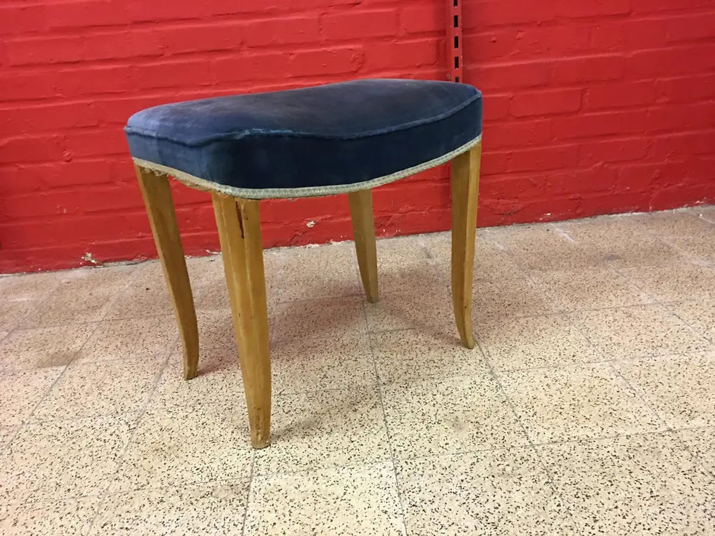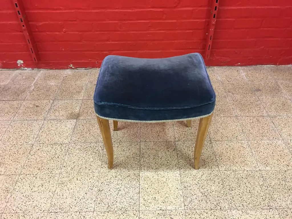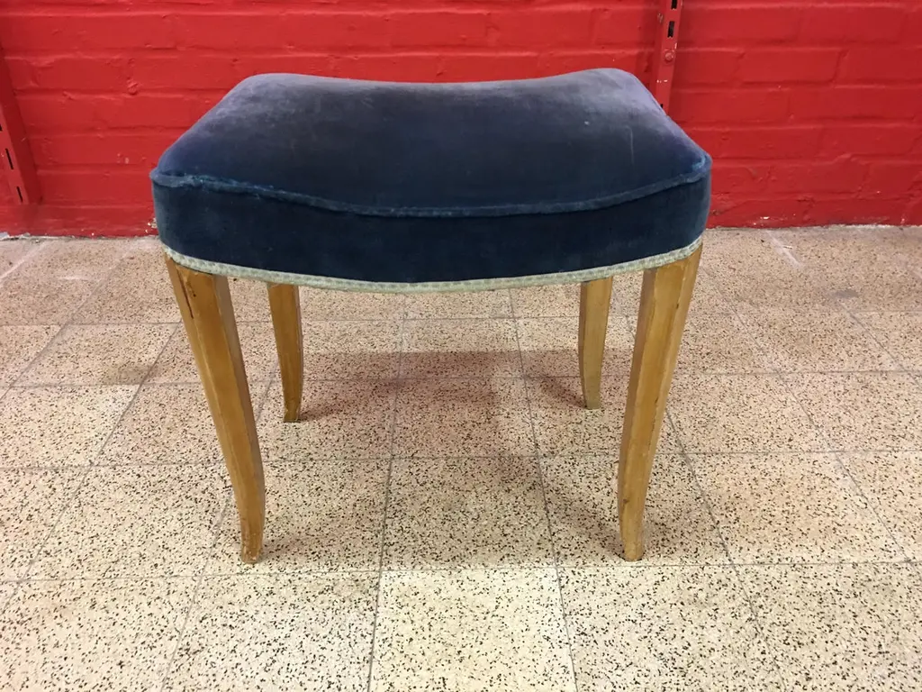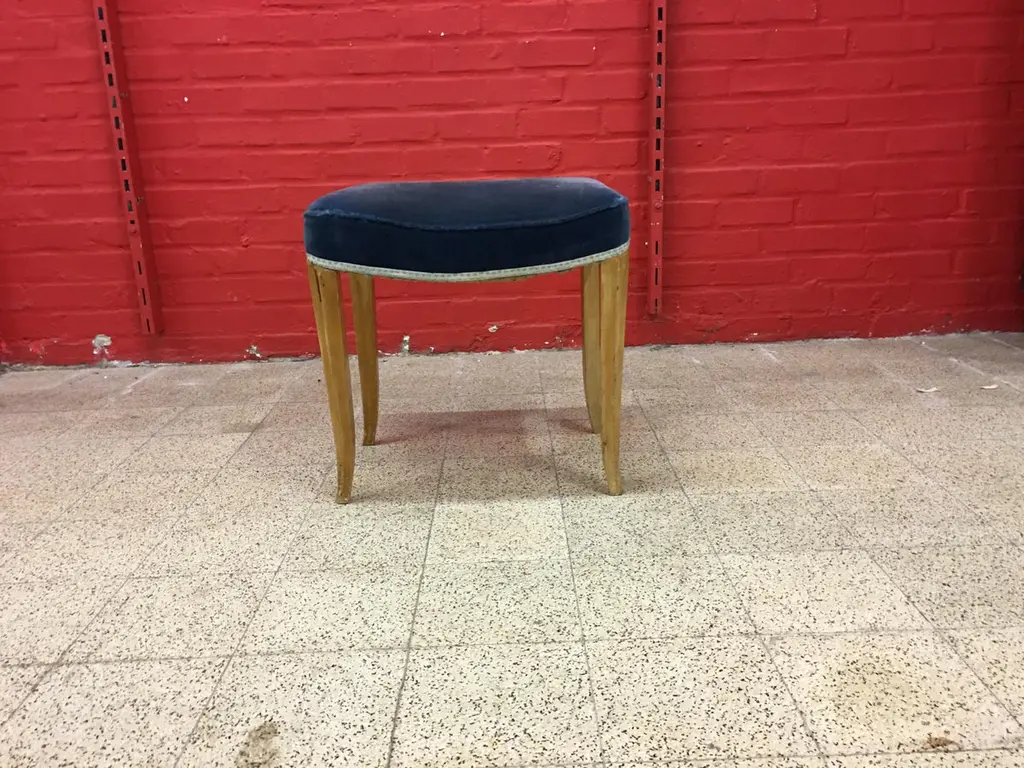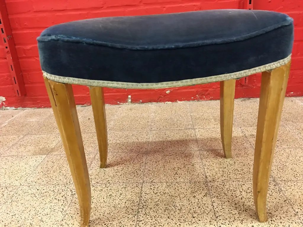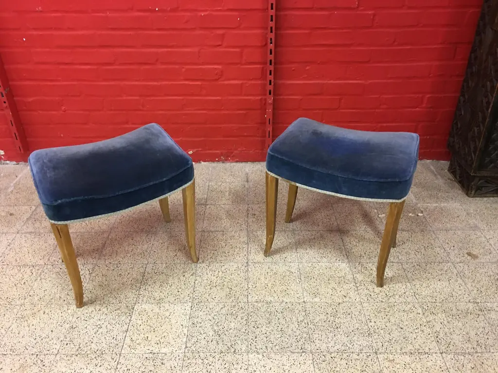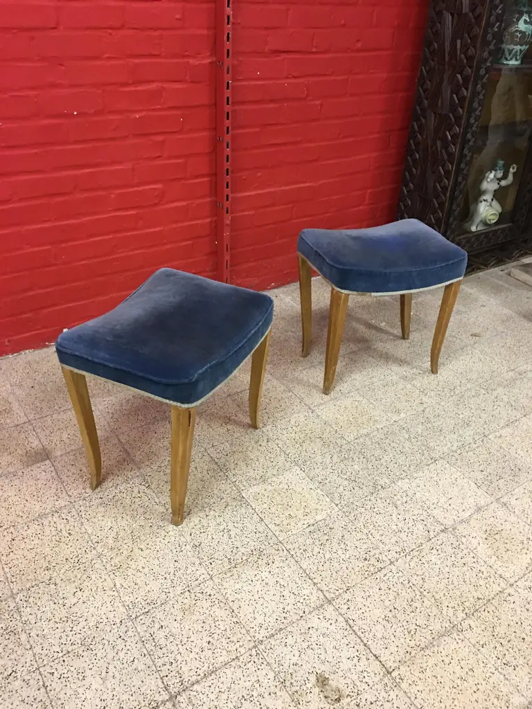 René Prou, 2 Art Deco stools in lacquered wood and blue velvet, circa 1940-1950.price is for onetwo are available