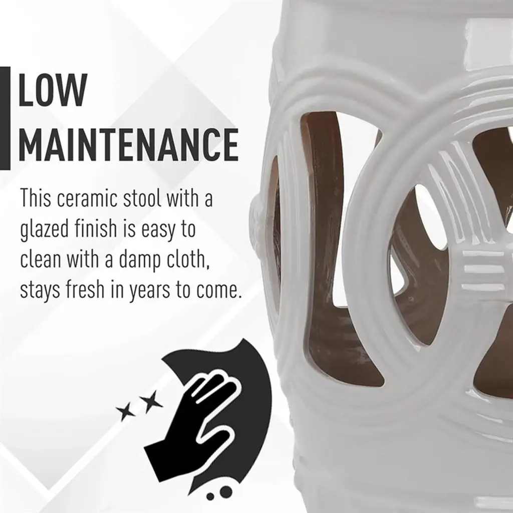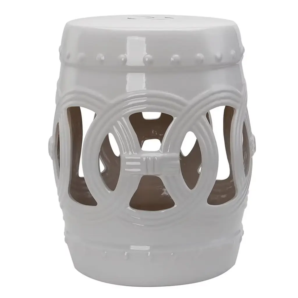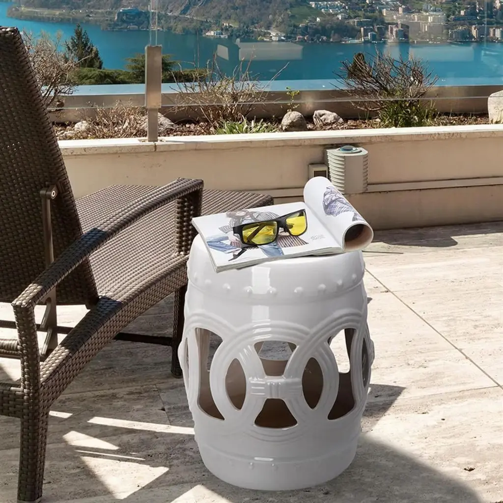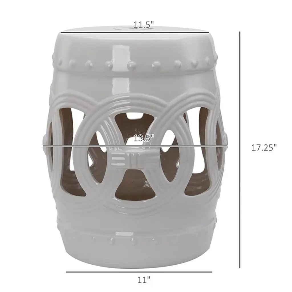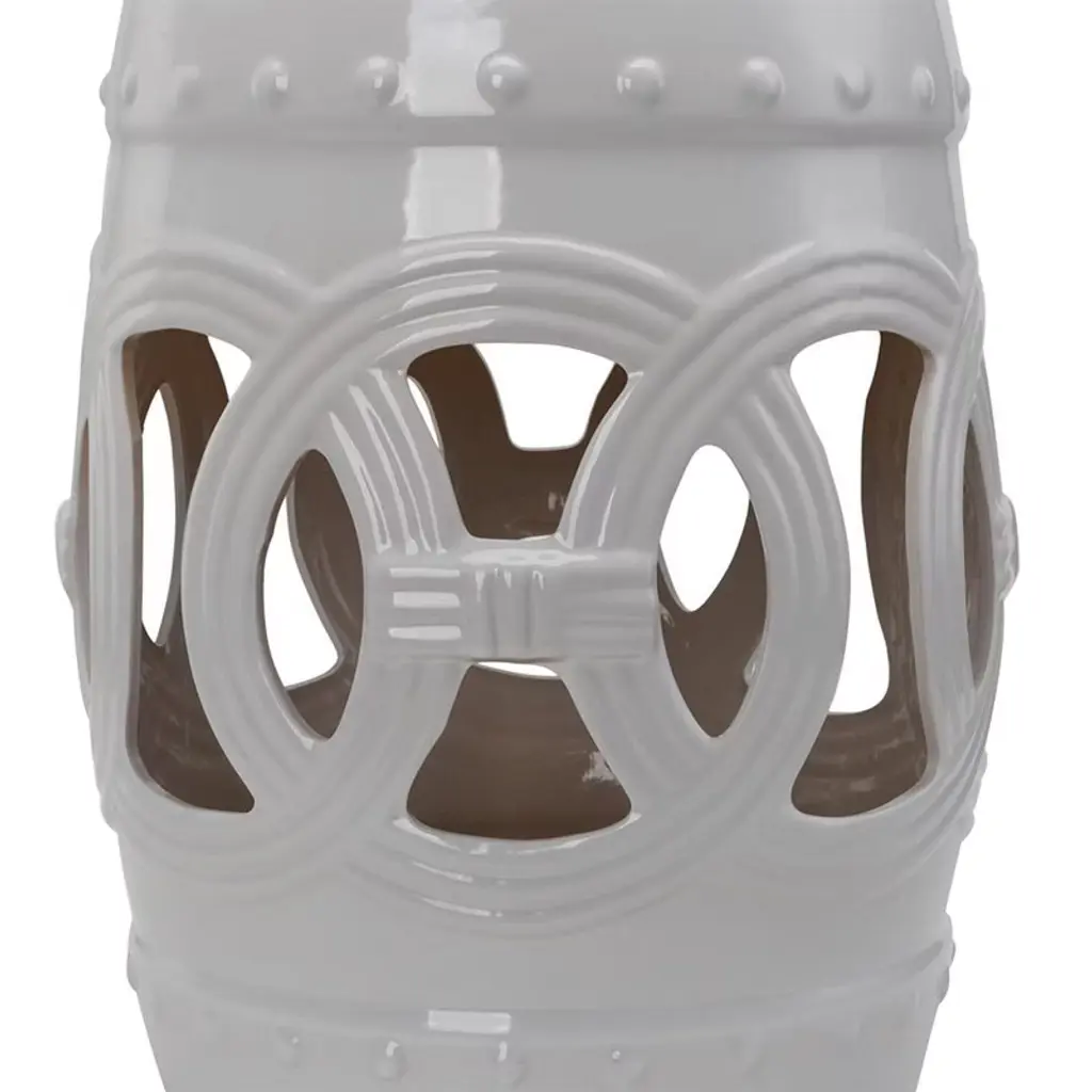 Resenkos Modern Garden Stool, Patio Stool Side Table,14" X 17" Ceramic Garden Stool With Double-coin Knotted Ring Design, White