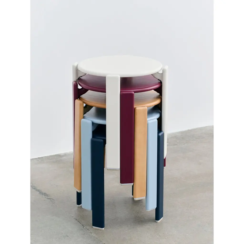 HAY's Rey stool is a fresh reinterpretation of the iconic chair designed by Bruno Rey in 1971. The classic collection, re-invented and re-released in collaboration with the original manufacturer, Swiss Dietiker, charms with its softly rounded lines and simple but detailed design. The timeless appeal of the Rey stool makes it an impressive addition to all spaces, private and public alike. In the Rey collection, the wooden frame and seat are combined in an innovative way thanks to the die-cast aluminum brackets. The unique mechanism also gives the stool its distinctive look: the seat looks almost as if it is floating, perfecting the robust design with an irresistibly attractive lightness.