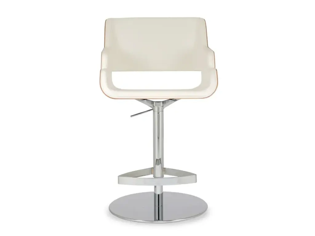 ROSE is a stool with shell in beech plywood veneered in American walnut. Gas lift.Upholstery in LINEA leather, colour MILK