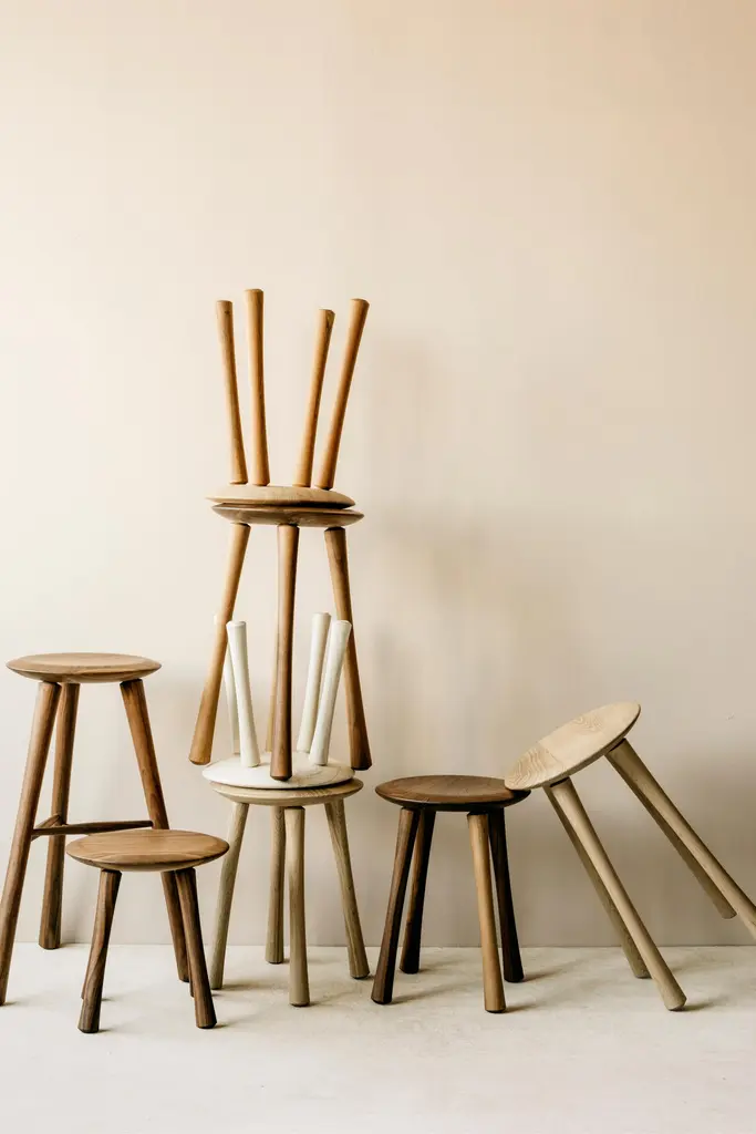 The Richard Watson Fawn stools are inspired by the form of an antique milk stool. The stools come in 4 sizes - step, table, counter, and bar. Each Richard Watson piece is made in Pawtucket, RI by a team of men and women who are passionate about their craft. The pieces are constructed using select domestic hardwoods and traditional joinery and hand finished with natural oils, lacquers and wax. Available in walnut, white oak, and bleached ash.