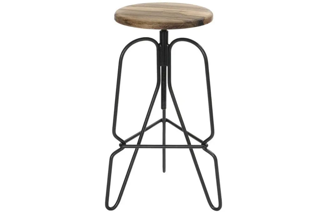 The rig stool is a minimal solid steel stool featuring an adjustable solid Black limba seat on a threaded rod. The legs are tied together with a triangular footrest.This handcrafted piece is hand-oiled using our in-house oils and techniques and black-powder coated steel.