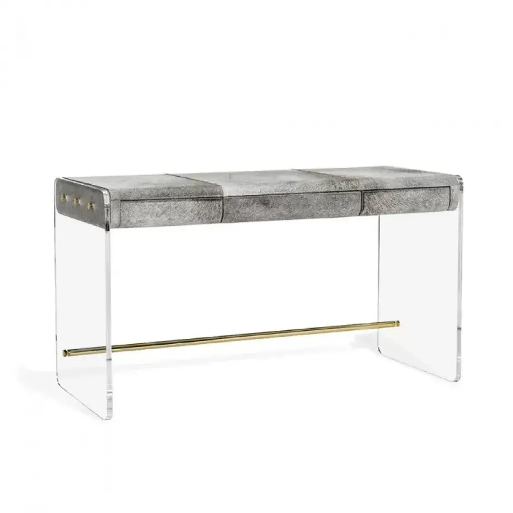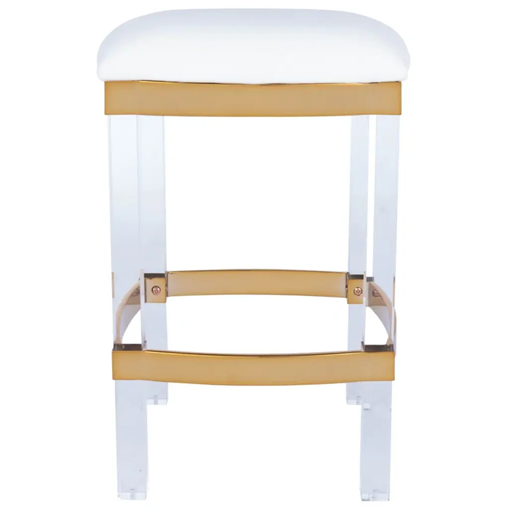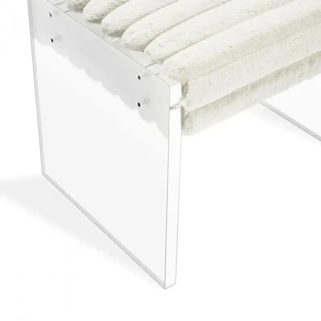 The lush texture of channeled cream faux fur plays off sleek, clear acrylic to make the Riley Stool a luxe-chic but totally versatile seating option.
