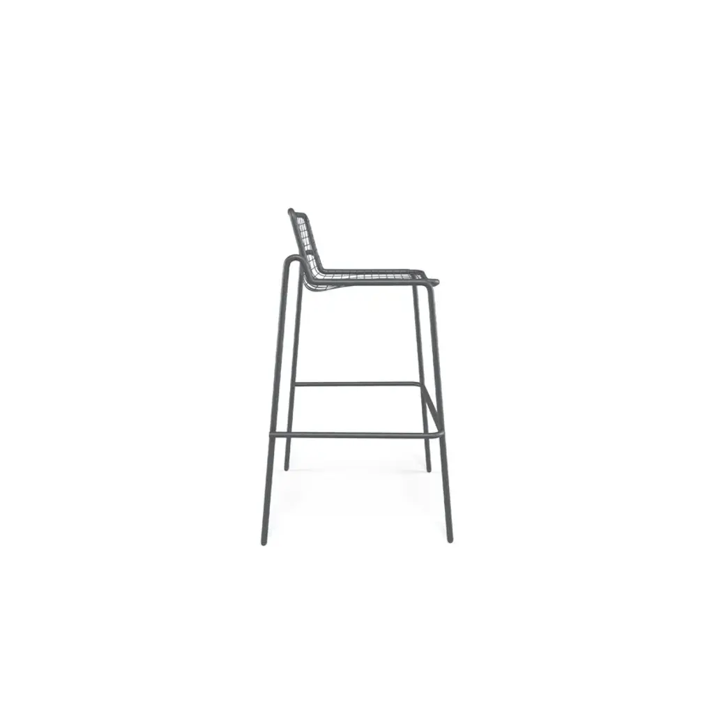 It may appear sober and detached but actually is able to welcome you in a surprising way. RIO R50 is a wise evolution of the Rio masterpiece that this year celebrates a half century. RIO R50 has a frame in ASFORM steel tube, high quality steel with high mechanical performance and high resistance to weight. The manufcaturing process creates a strongly characterized sign, a letter R, which is identified in the junction between seat and backrest. All structural weldings are made with Mig technology which gives great resistance to stress and rust risk; meanwhile the net, composed by steel wires, is electro-welded to the frame for a more precise aesthetics. Like all EMU products, a cataphoresis pretreatment is provided and then a thermosetting powder coating treatment, which finally produces a layer of homogeneous paint in terms of thickness with an high level of adherence and resistance. Nylon feets supports make it easy to move and protect the product. The R50 series is made by wires net and steel tubular and even if inspired by its ancestor it is distinguished thanks to an original and ergonomically interesting folding line. Its solid but light shape supports the back and seat and makes this seat an example of perfect balance between comfort and aesthetics, suitable for indoor and outdoor spaces. Restyling and modernisation in full compliance with a classic furniture piece. RIO R50 is Made in Italy and is a complete seats collection composed by dining chair and armchair, lounge armchair, swing armchair, stool and coffee table. It can dress various destinations such as dining areas and lounge areas with distinctive style. Outdoor and indoor restaurant areas, restaurant areas of hotels, outdoor relaxing areas such as patios, colonnades and winter gardens, reception areas for hotel , small relaxing areas in terraces and balconies of hotel structures.It can also be used in waiting rooms of contract and private spaces such as airports, museums, other community contexts, as well as co-working environments and classic office environments. It can furnish also retail contexts, private spaces such as home offices, study rooms, living and outdoor living areas.