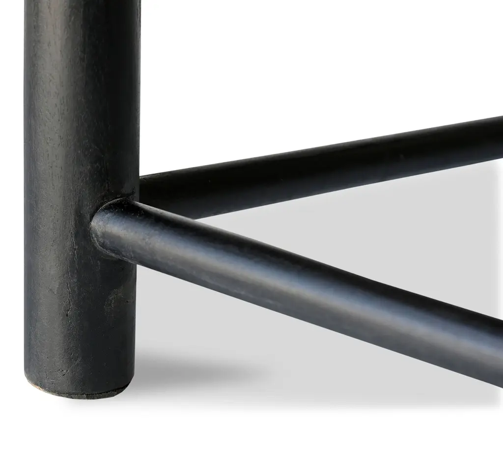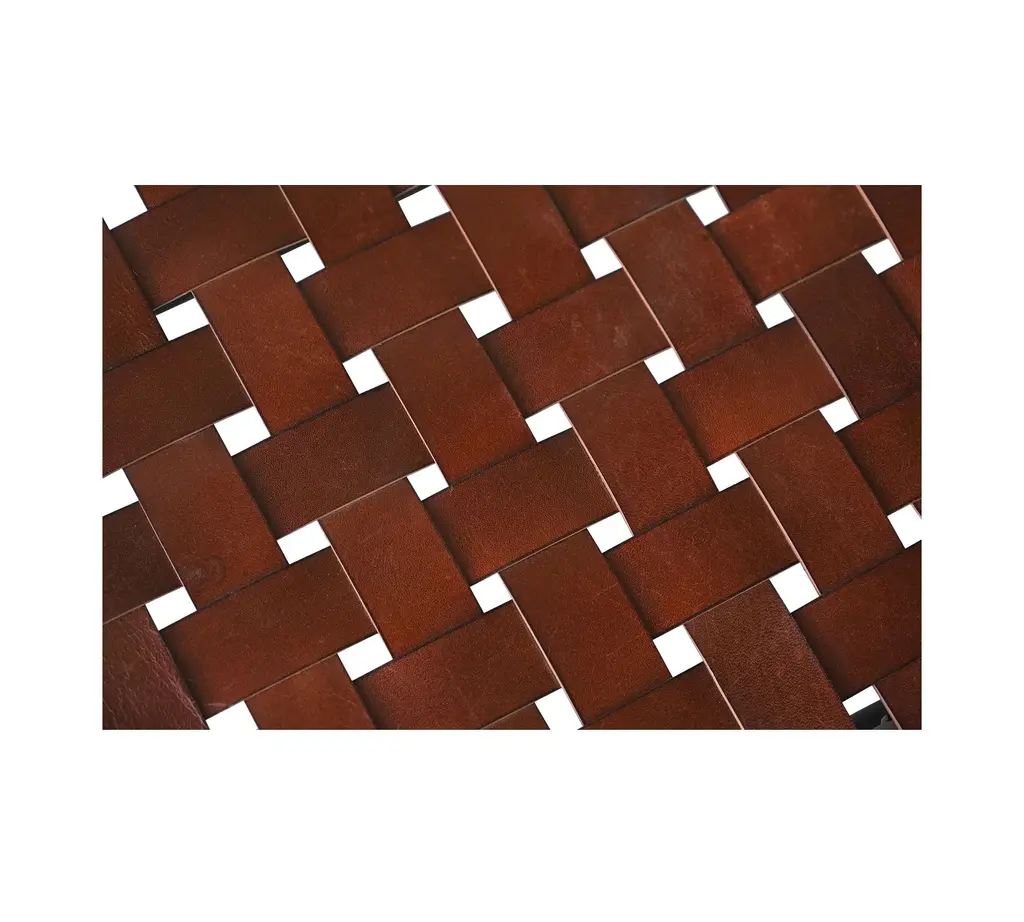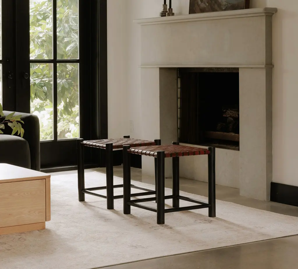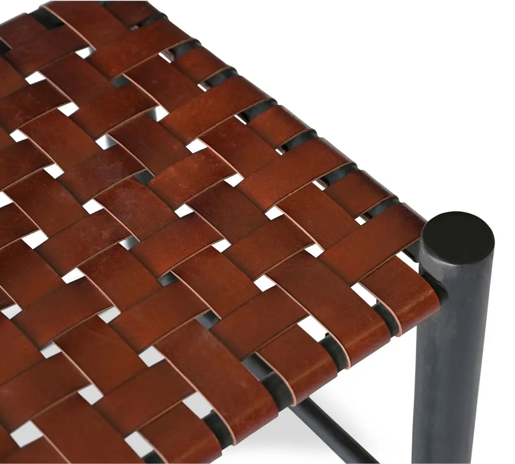 Rustic and refined, this stool will lend your space an aura of lived-in luxury. Chunky legs frame a seat woven from wide straps of top grain buffalo leather, which will lighten, soften, and patina with time and use. Crafted in solid mango, it also gives new life to wood sourced from orchard trees that are no longer able to bear fruit.