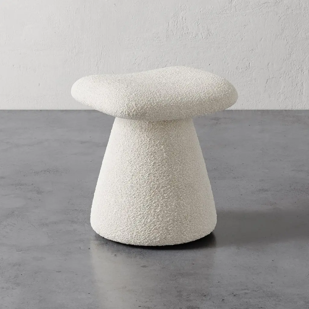 "Romy" Upholstered Stool In Berbers / Bouclés By Christiane Lemieux