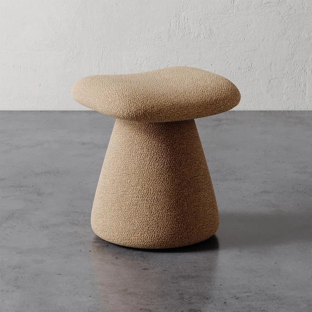 The Romy Upholstered Stool / Ottoman features a modern look with a flared pedestal base and a contoured seat for ultimate comfort. Perfect for layering into any space, it doubles as stylish extra seating for guests. Available in two luxurious bouclés and five gorgeous velvet colors, the Romy stool enhances any room with its versatile design. It's an ideal choice for living areas, bedrooms, or entryways. The Romy Stool is handmade by skilled artisans in North Carolina. We can do COM upon request.This listing is for the stool upholstered in any of our bouclé or berber fabrics. There are 3 color options, a "Cream", a pink "Rosewood", and tan "Goldenrod". Please contact us if you are interested in other fabric options. We also have it available in many velvet colors in a separate listing.