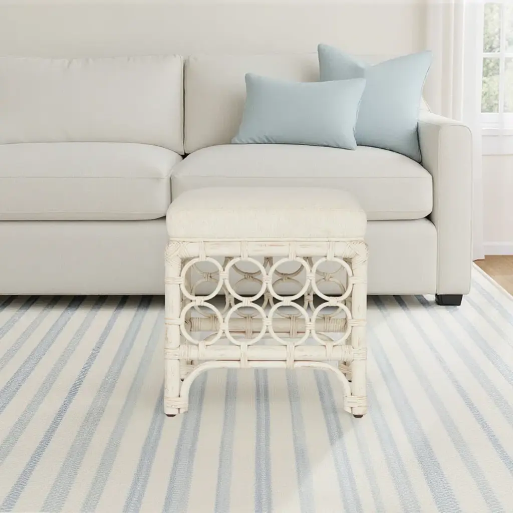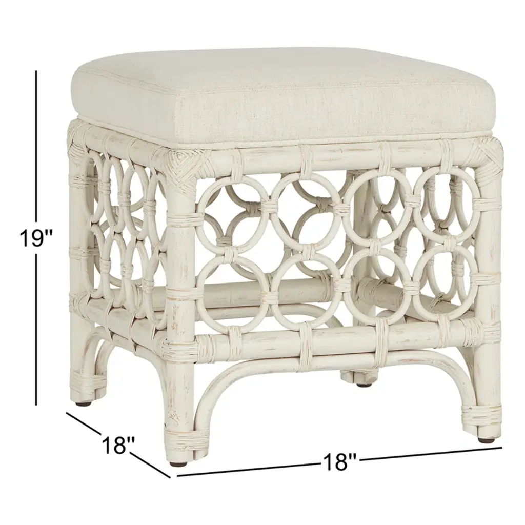 Add a dash of charm and coziness to spaces with the rattan stool, featuring circular textured accents and an upholstered seat for added comfort.