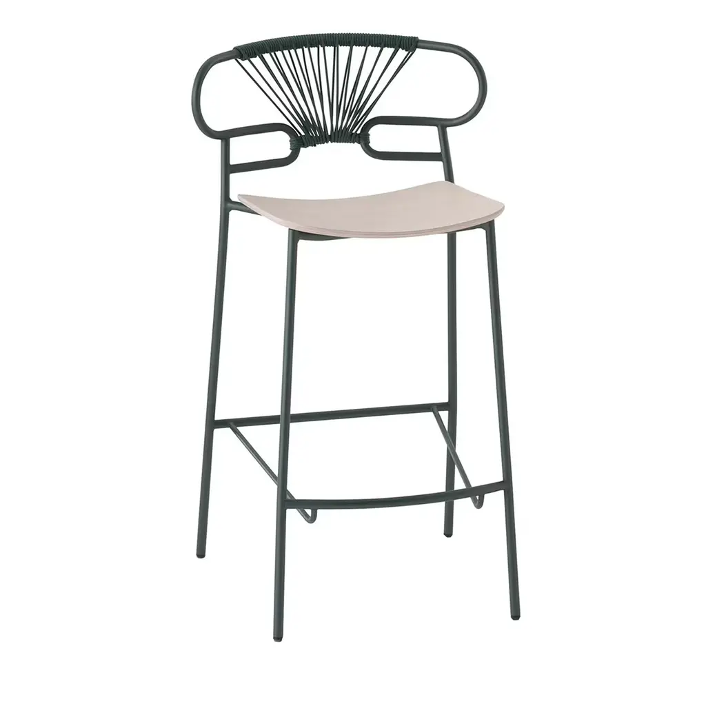 Elevate your outdoor oasis with the Rope High Outdoor Stool from Unopiu Coco. This graphite iron and beige hand-woven rope stool adds a contemporary touch to any garden and pairs perfectly with the Coco high bar table. Enjoy both comfort and style in the great outdoors with this elegant addition.