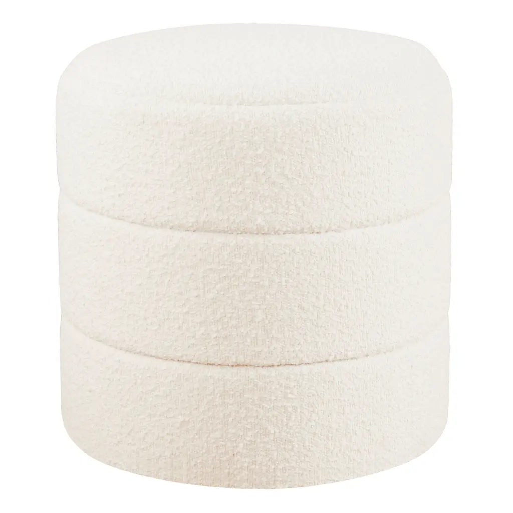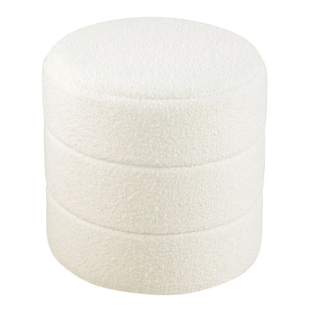 Rose Round Cream Boucle Channel Tufted Upholstered Stool