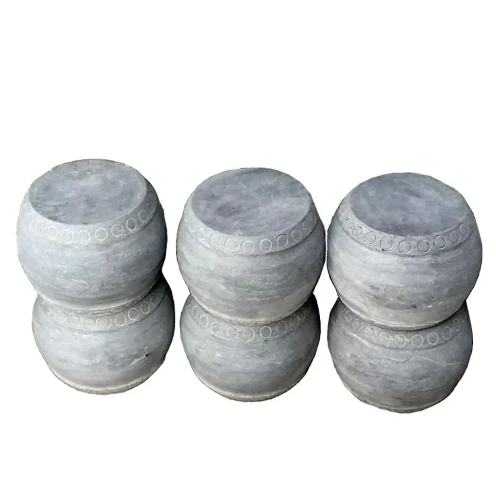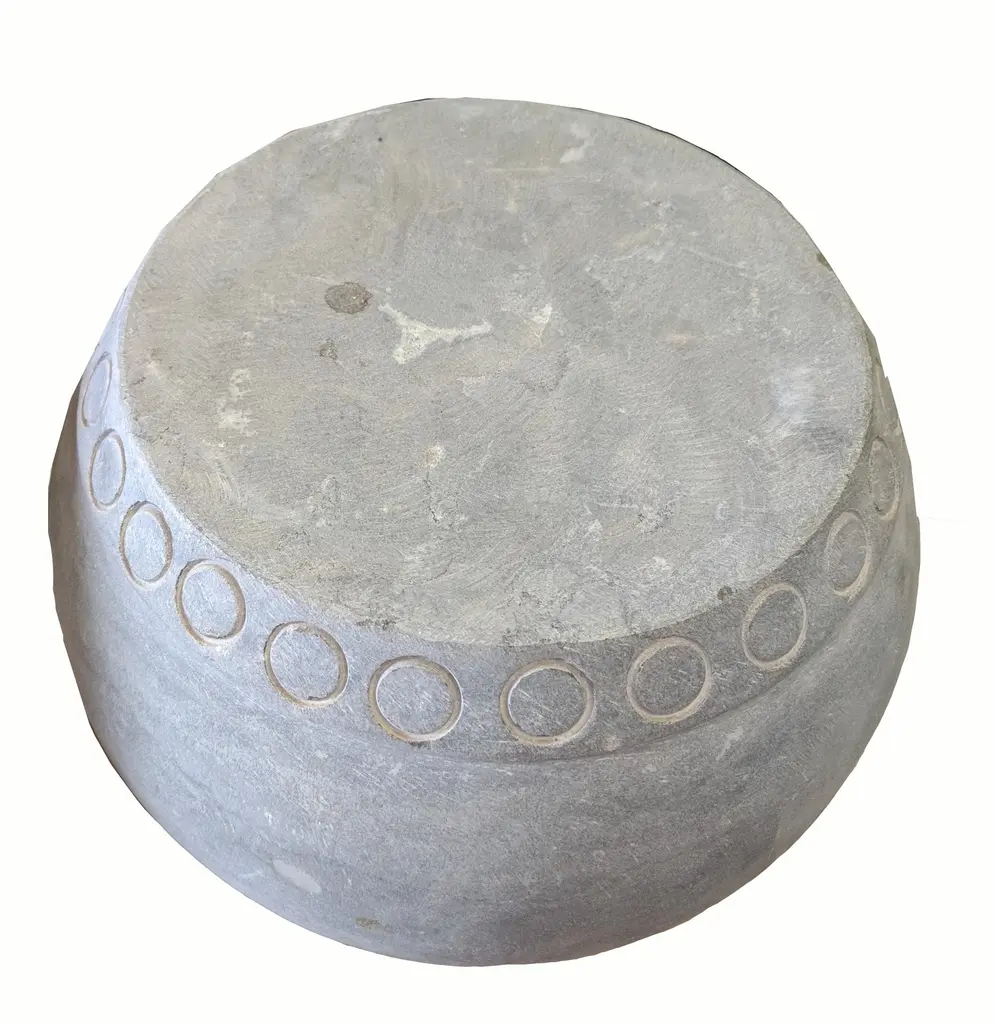 This simple smooth curved stone pedestal can be used as plant stand or garden stool. It can be used either indoor or outdoor. 10 are available. Item No.: Demension: 11.8"W, 11.8"D, 7.1"H Circa: New Material: Stone Feature: Handmade. Each piece has natural variance.