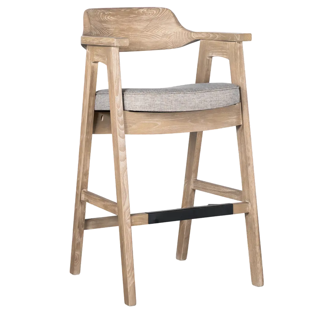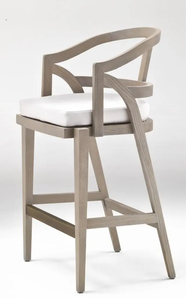 Ruka High Outdoor Stool In Solid Sassafrass And White Fabric With Footrest