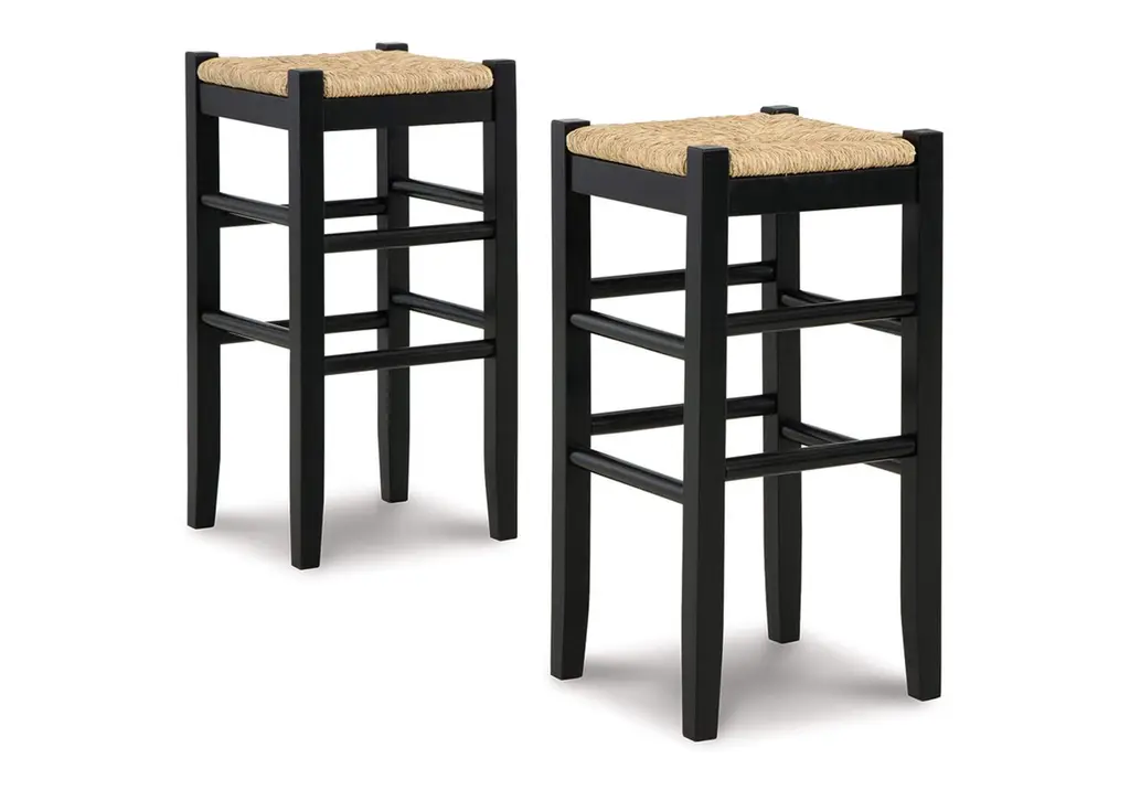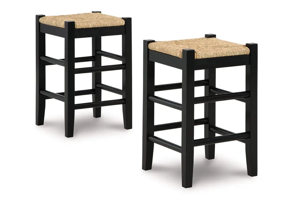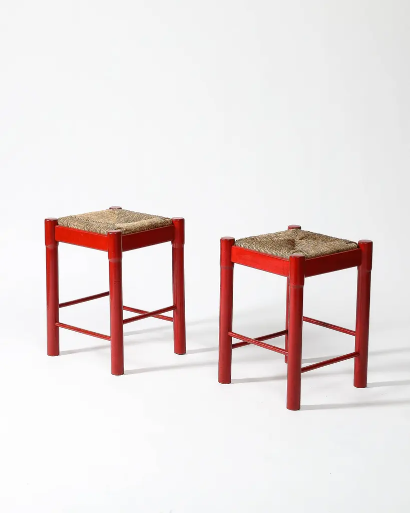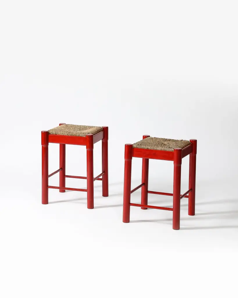 Priced Individually; two available.Bright, charming stools with hand-shaped bases and woven cord seats.