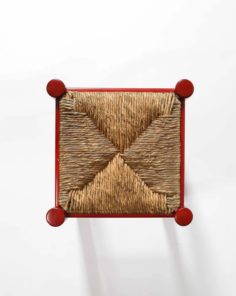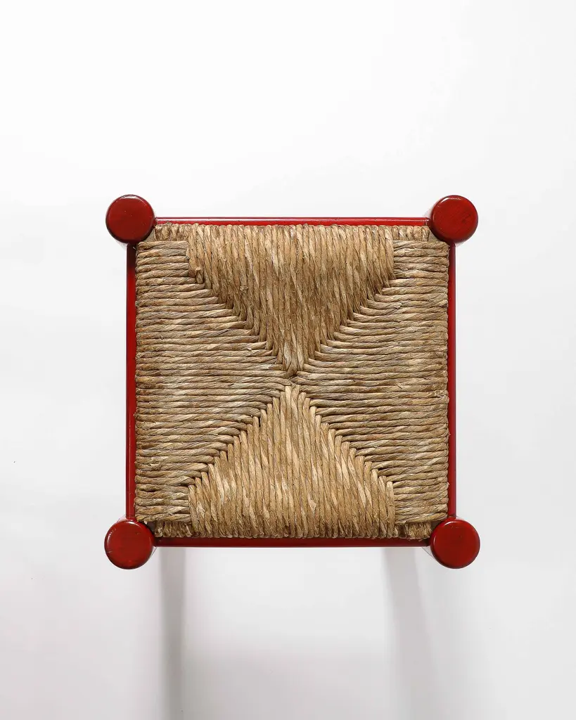 Rush And Lacquered Wood Stool, Italy, C. 1950