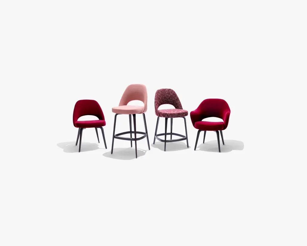 The Saarinen Executive Collection, which is now found in dining areas as often as it is in offices, transformed the notion of what executive seating could be with its sculptural form and modern finishing.Featured in nearly all Florence Knoll-designed interiors, the Saarinen Executive Collection remains one of the most popular Knoll designs. Introduced in 1950, the chair brought elegance and comfort to the then-drab world of executive seating. The collection was later expanded to include a Stool. With its timeless shape, graceful curves, and balanced proportions, Saarinen Executive seating is now just as likely to be found in dining rooms as it is in offices.