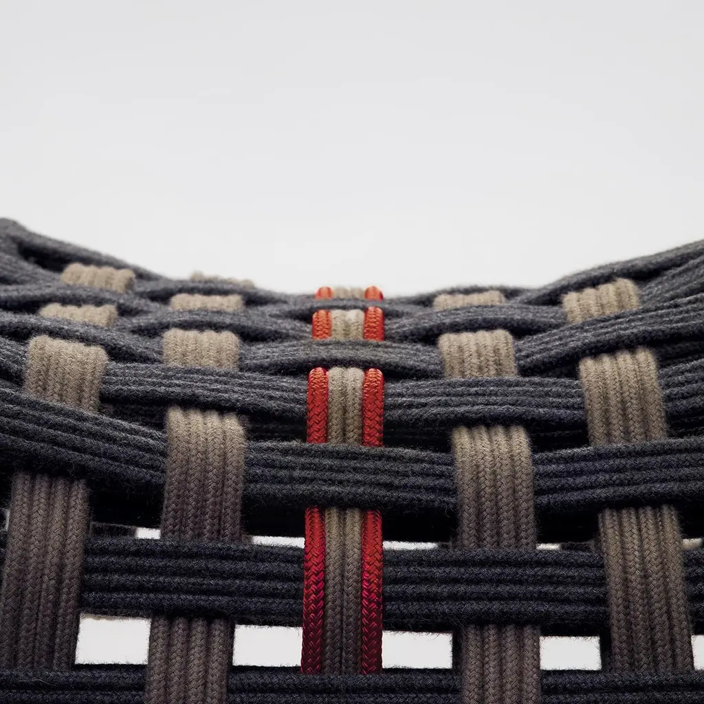 This splendid stool is a modern and elegant interpretation of a horse saddle, showcasing refined craftsmanship. Suitable for indoor and outdoor use, the structure is crafted of tubular steel and sustains a superb seat made of technical rope woven by hand and boasting gray, sand, and red hues. This piece is customizable in other colors and in the following sizes (in cm): L 44 x W 42 x H 78 and L 43 x W 40 x H 68.