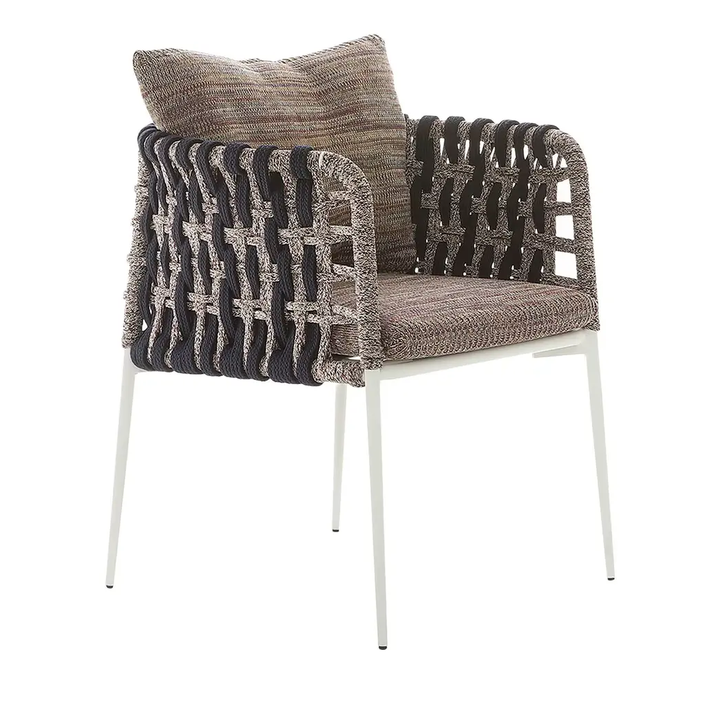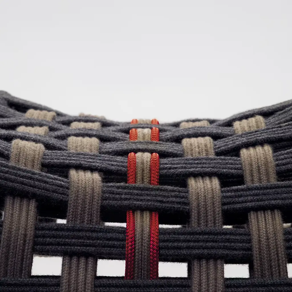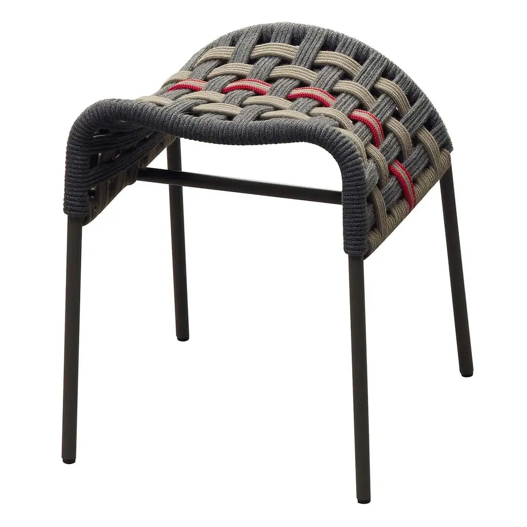 This splendid stool is a modern and elegant interpretation of a horse saddle, showcasing refined craftsmanship. Suitable for indoor and outdoor use, the structure is crafted of tubular steel and sustains a superb seat made of technical rope woven by hand and boasting gray, sand, and red hues. This piece is customizable in other colors and in the following sizes (in cm): L 44 x W 42 x H 78 and L 43 x W 40 x H 68. Please refer to the Concierge for details and pricing.
