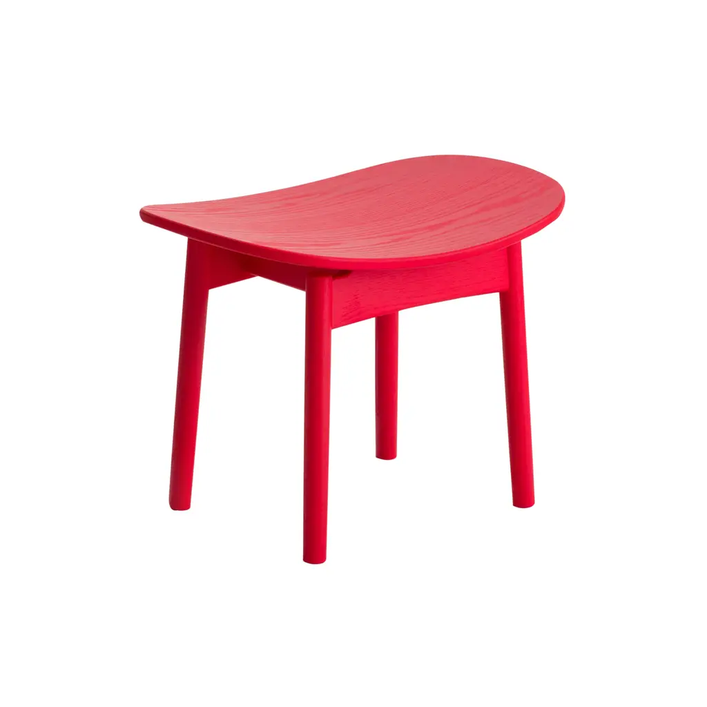 The Saga Lounge Stool, designed by Anderssen & Voll, is a generously proportioned stool featuring a curved bent wood seat, available in oak or ash.