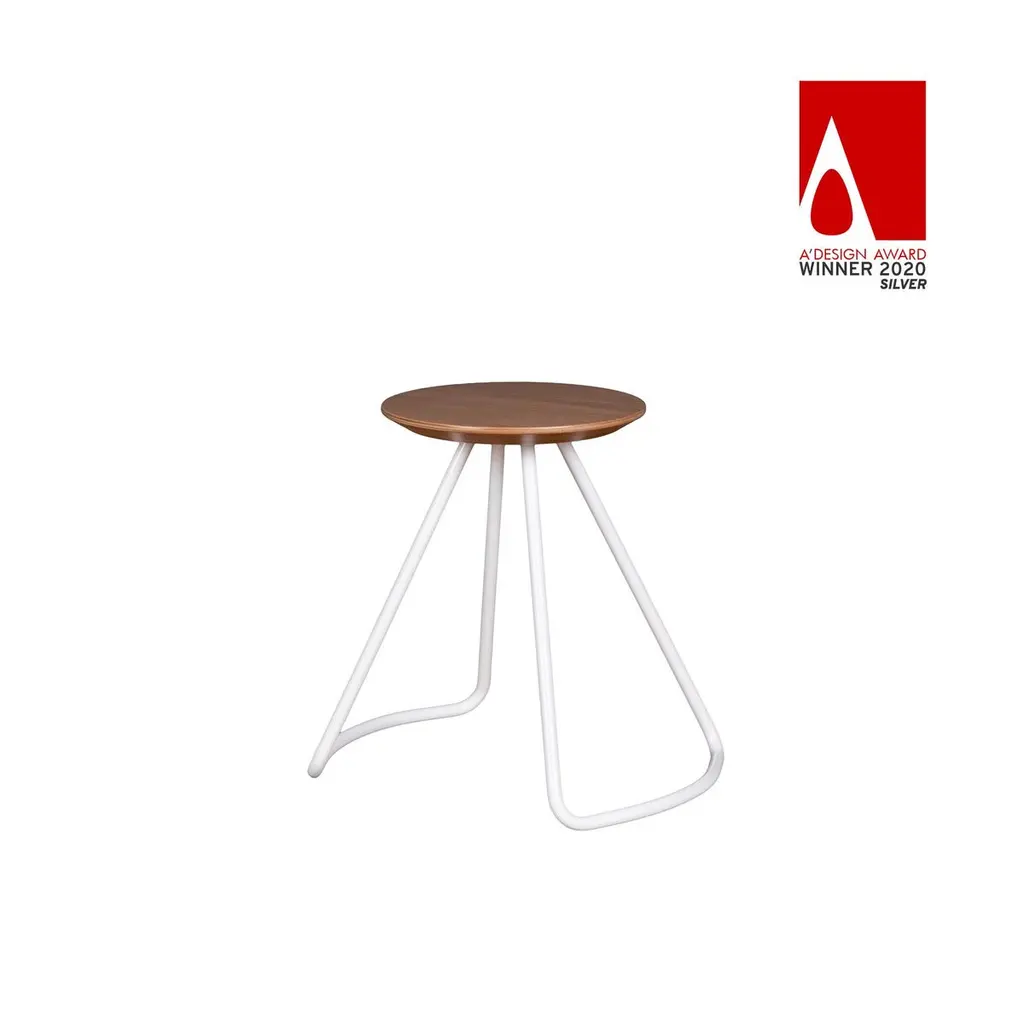 Sama stool/table is part of the Sama collection, which provides functionality through simple, yet striking and sculptural forms that add a unique and elegant touch to its environment. Sama stool/table serves as a practical companion to be used as a stool or a side table based on your needs.Inspired by the poetry of whirling costumes worn in Sama ceremonies, the design plays with the geometry of conic sections and makes use of metal bending processes to reinterpret this cultural inspiration through minimal forms that provide a unique touch to living spaces. Produced by skilled wood and metal craftsmen, the collection stands at the intersection of craft production and modern design. With its minimal design and strong visual effect, Sama collection provides functionality, emotional experience and uniqueness.Sama Collection received Silver A' Design Award in 2020 and Design Turkey Superior Design Award in 2019. Material: High quality oak veneer on birch plywood and powder coated metalDimensions: W 46 cm, D 38 cm, H 44 cm, seat diameter 31 cm.