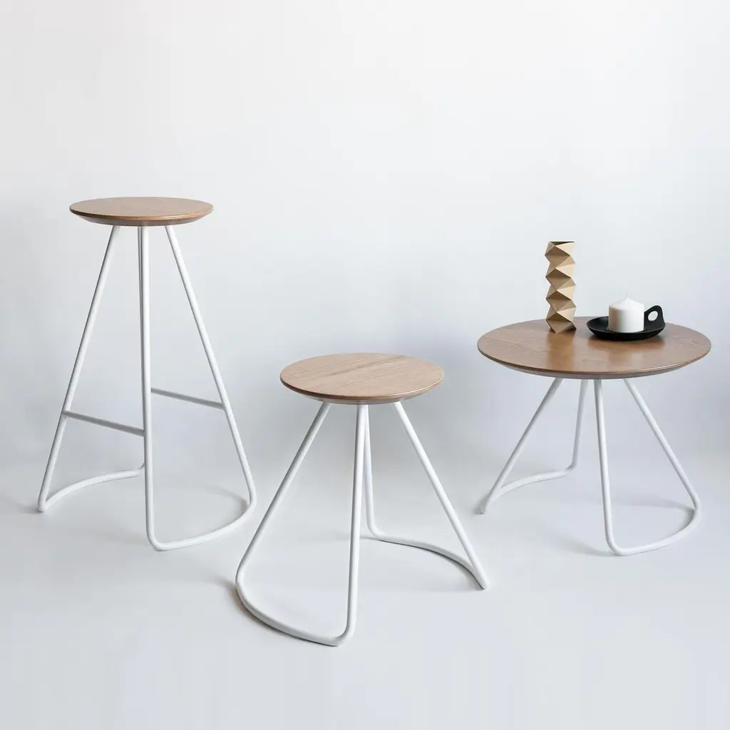 Sama Stool/table, Contemporary Modern Minimalist Natural Oak & White Metal