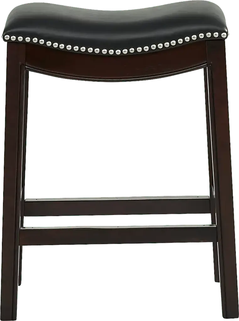 Sleek and stylish, the Samford counter height stool creates a polished atmosphere for mealtime and cocktail hour. Crafted with fine detail, this stool boasts a rich brown finish. Its traditional backless design showcases silver nailhead accents and smooth, leather-like upholstery in black.