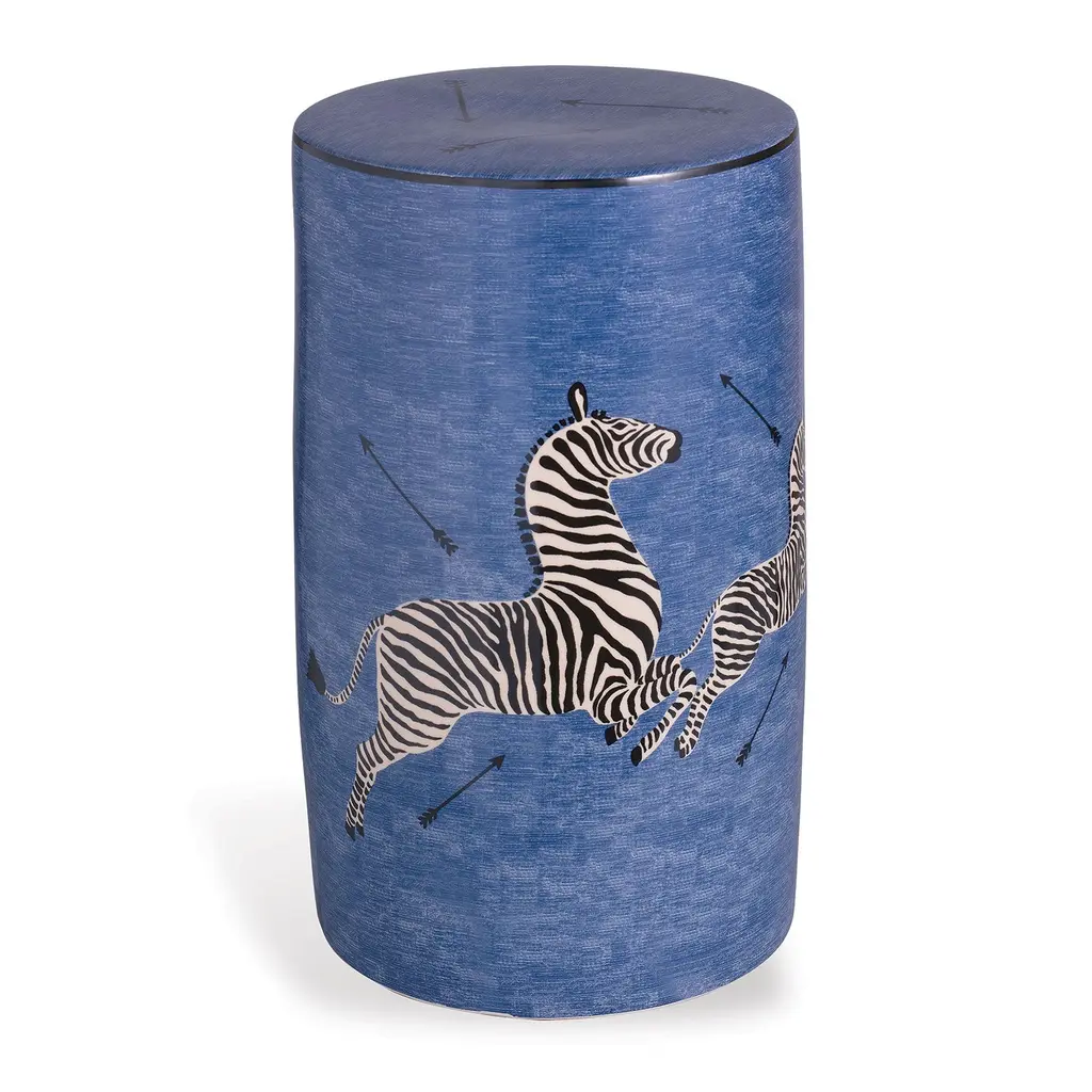 This Scalamandre zebra pattern tool in a variety of fun colors can be used as a accent table or garden stool, perfect by the chair as a table or as an extra pull up stool on the patio. Its for the adventurer in us all. A little background history: In 1945, Flora Scalamandre was asked by a friend in New York, Gino Ci