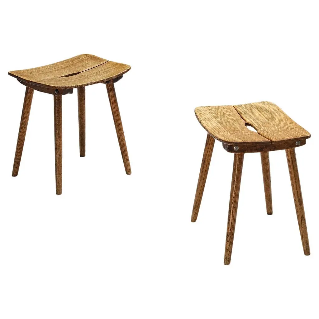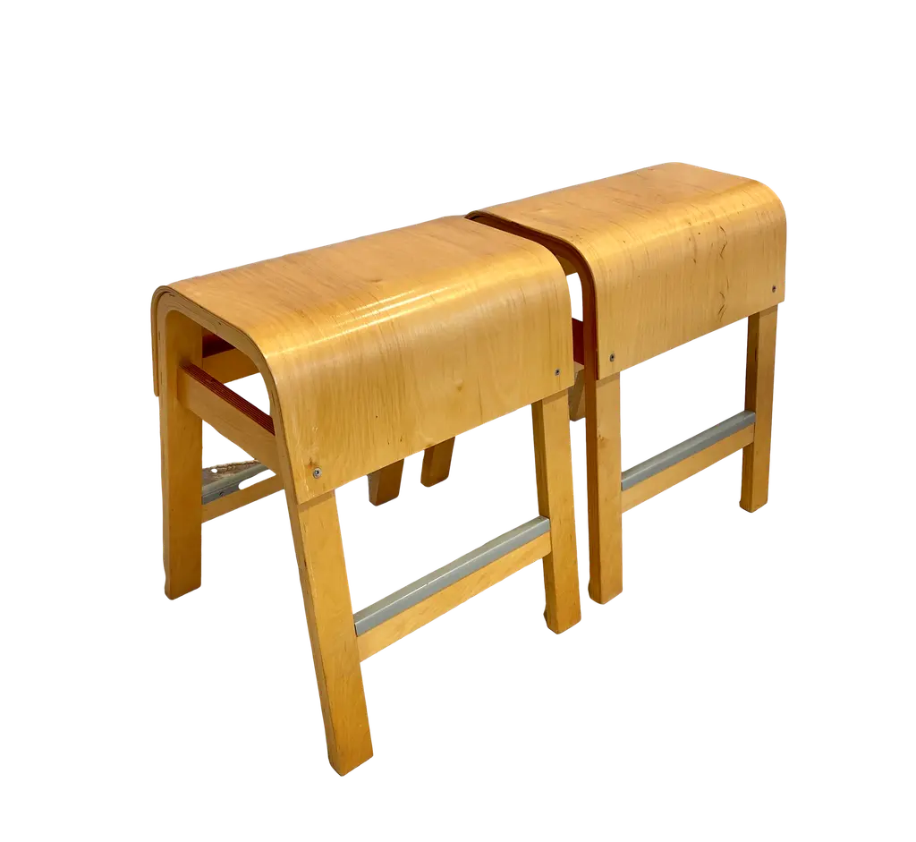 A pair of 1970s classic Swedish Mid-Century modern design stools made by IKEA. Designed by Ehlen Johansson featuring molded plywood.