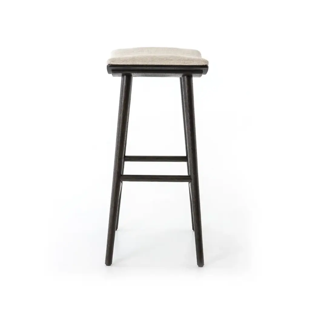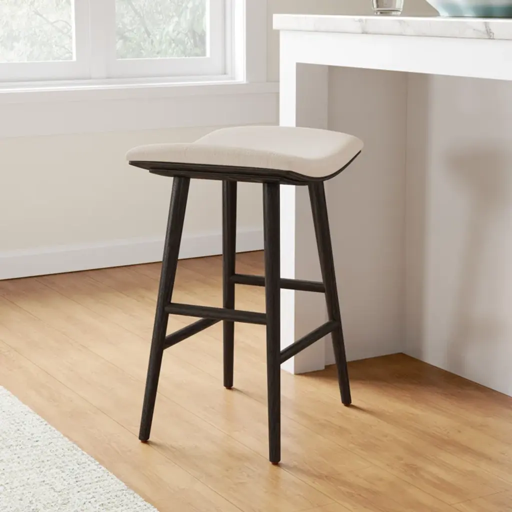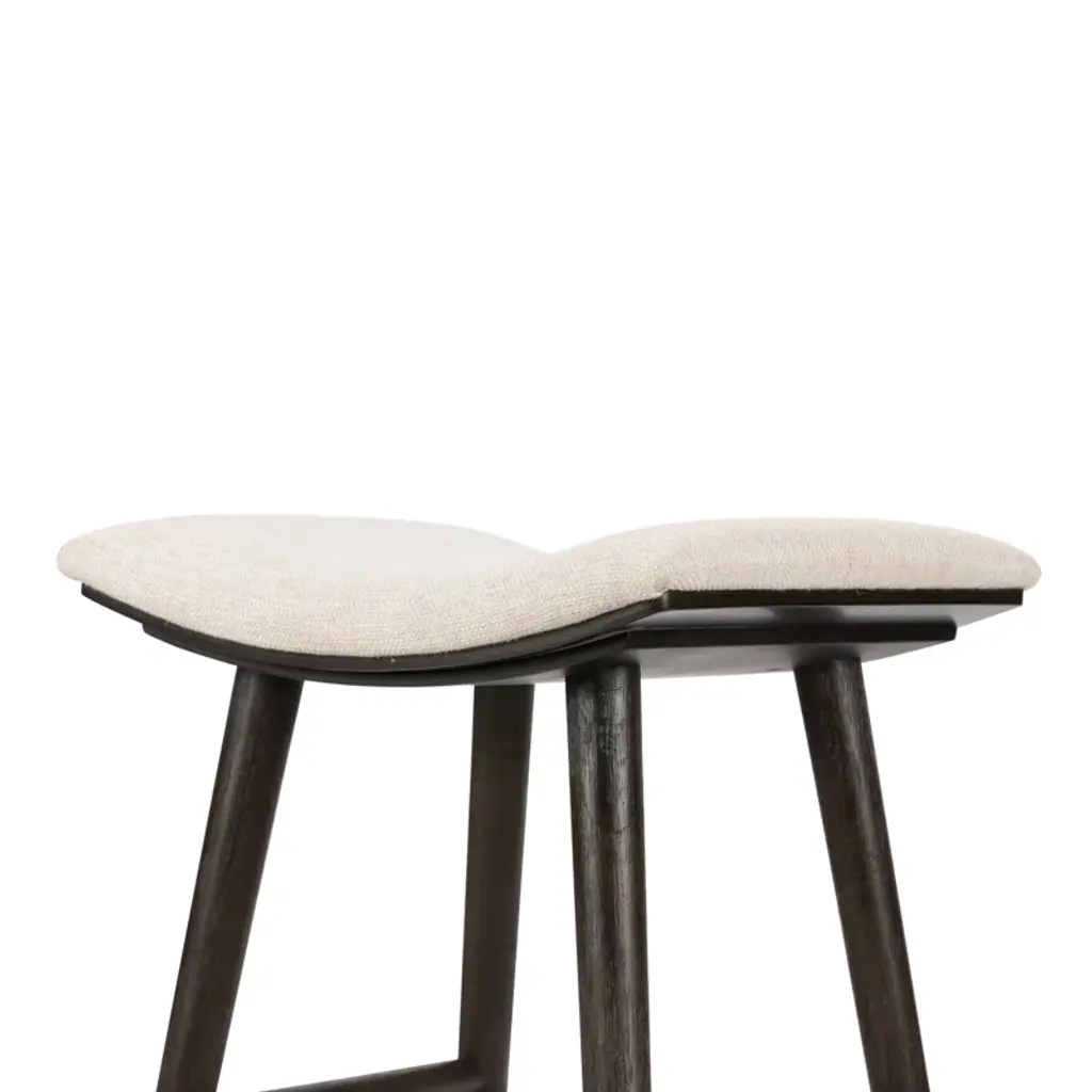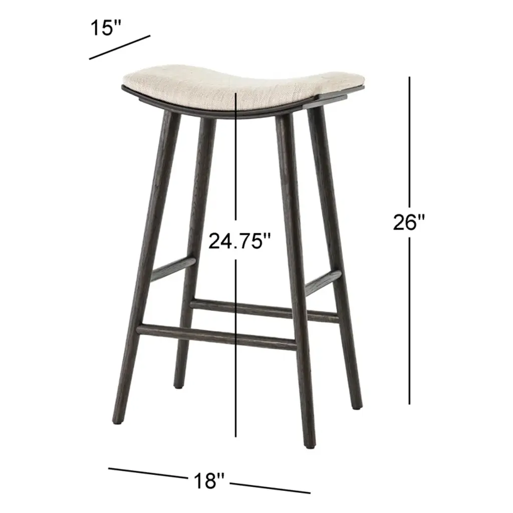Slim styling meets color contrast for effortless impact. Light carbon-finished oak framing supports a saddle-style seat of natural-toned upholstery.