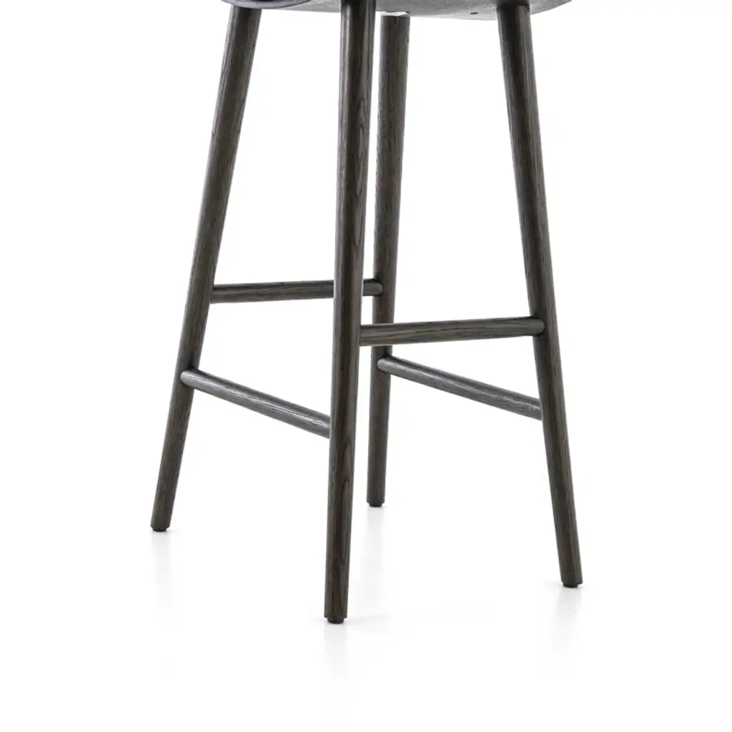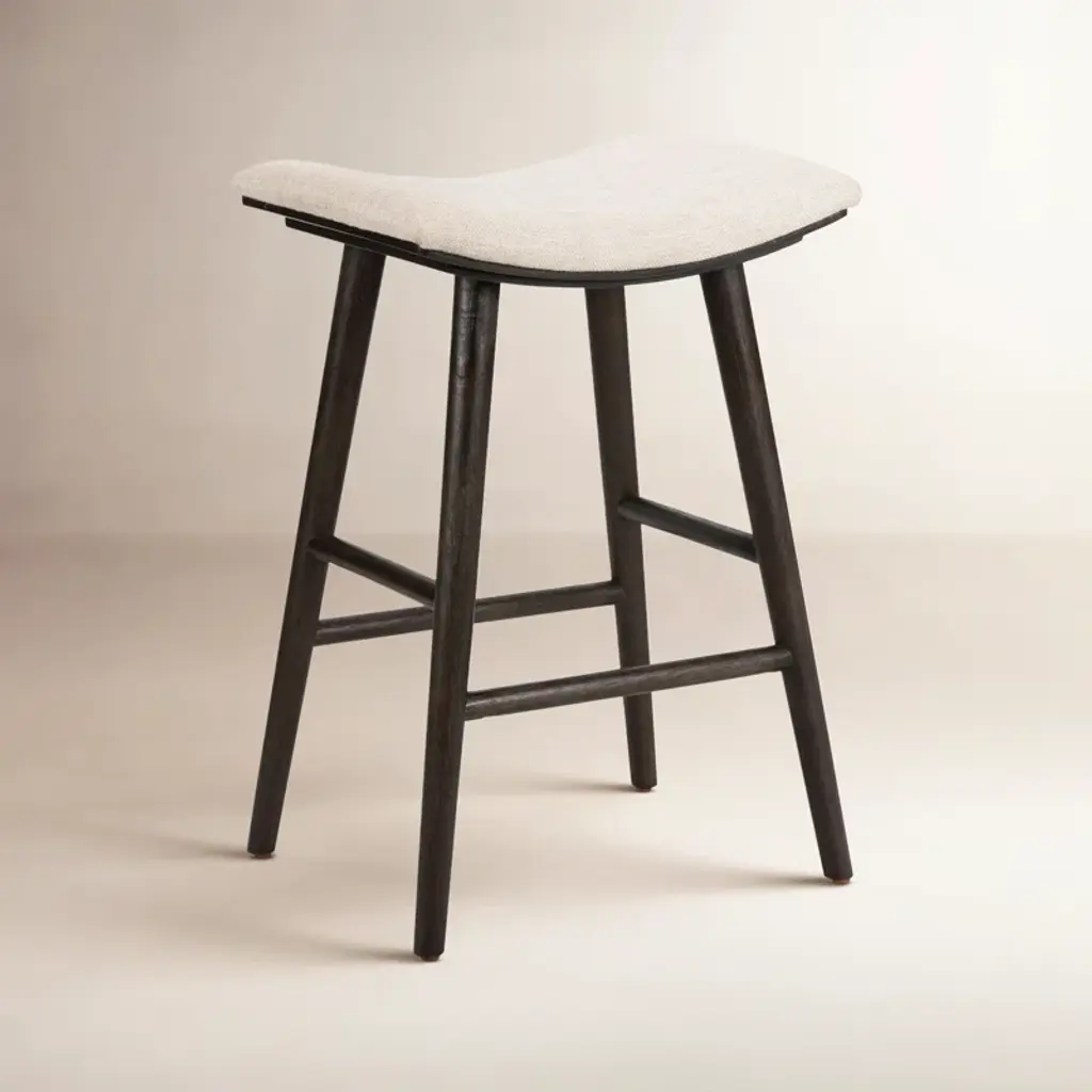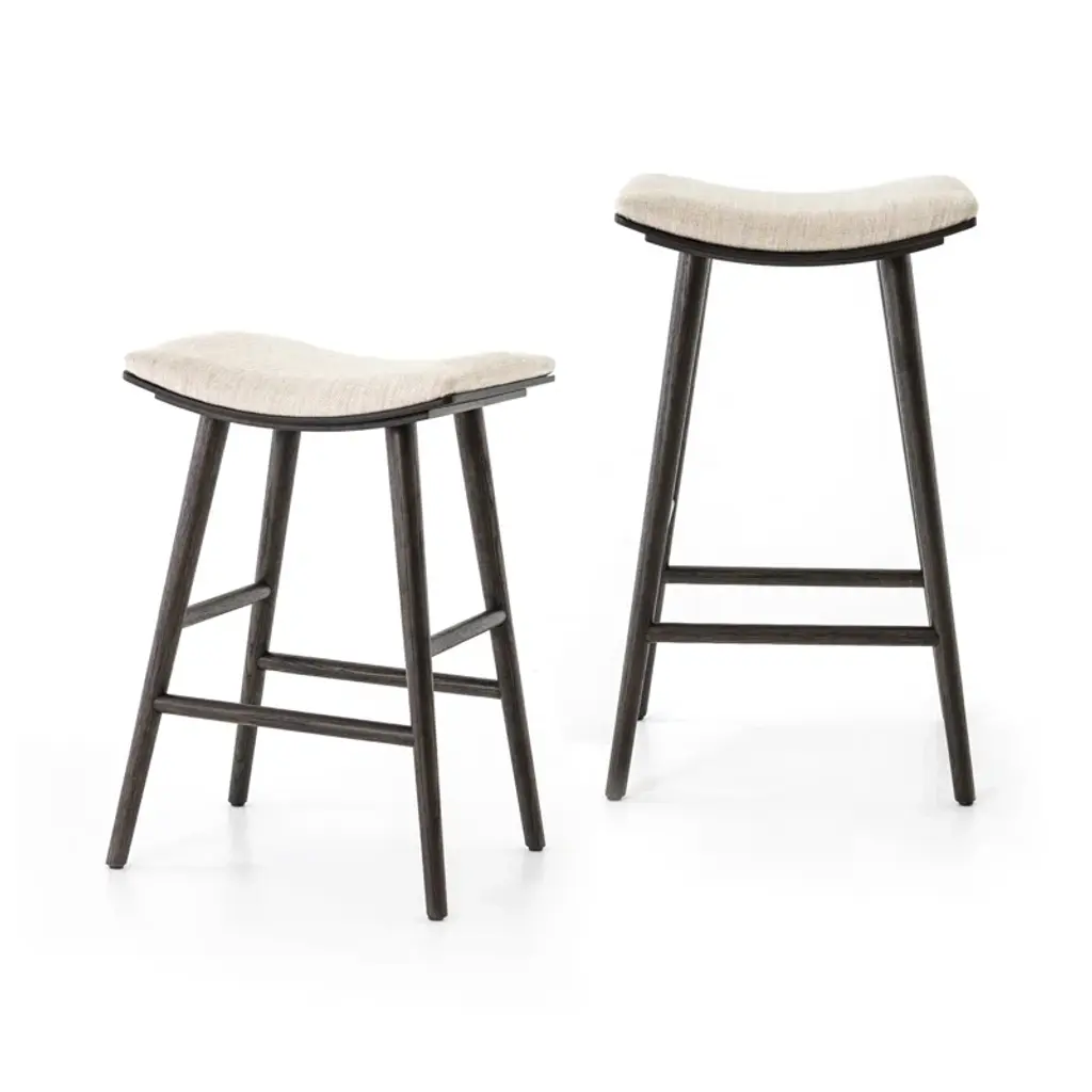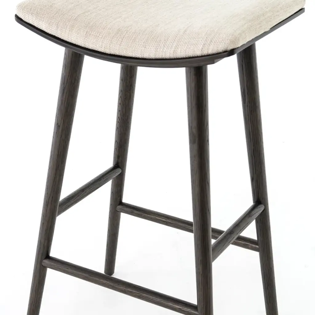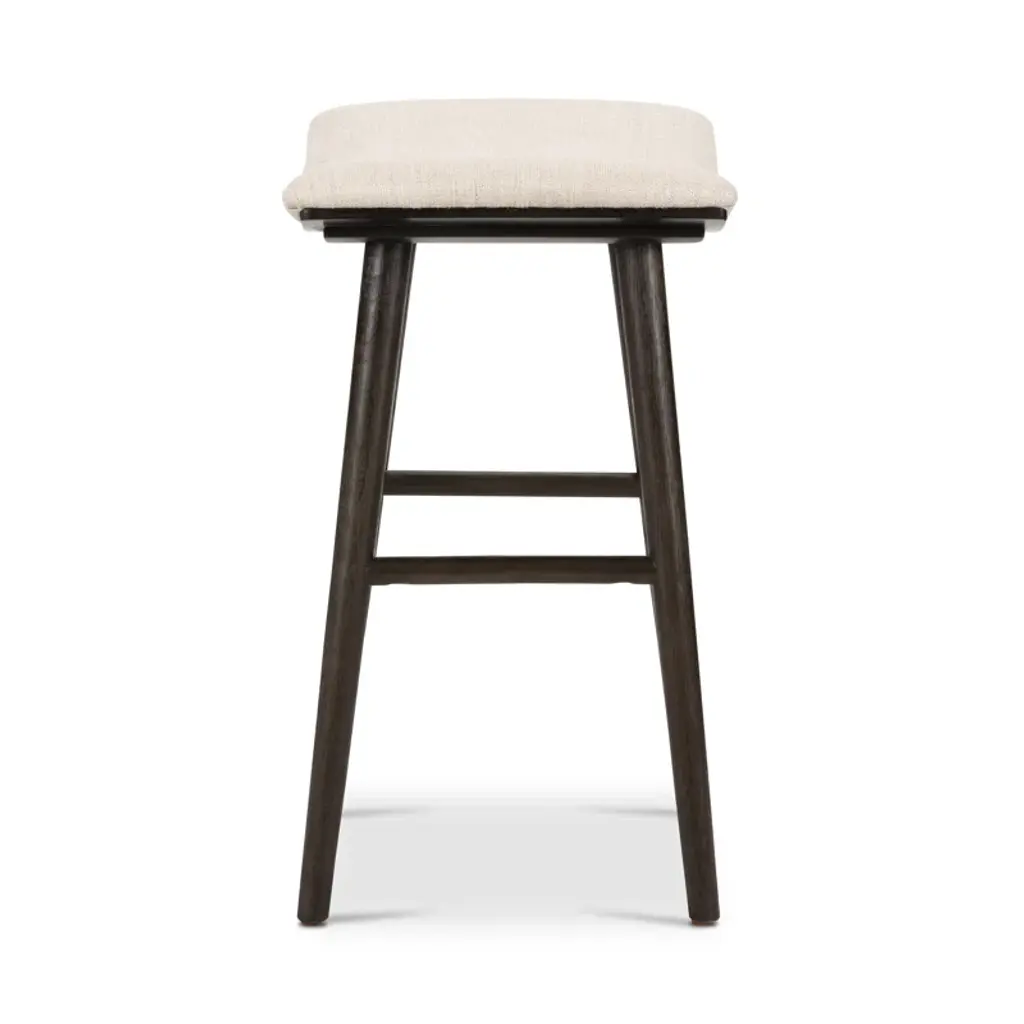 Slim styling meets color contrast for effortless impact. Light carbon-finished oak framing supports a saddle-style seat of natural-toned upholstery.