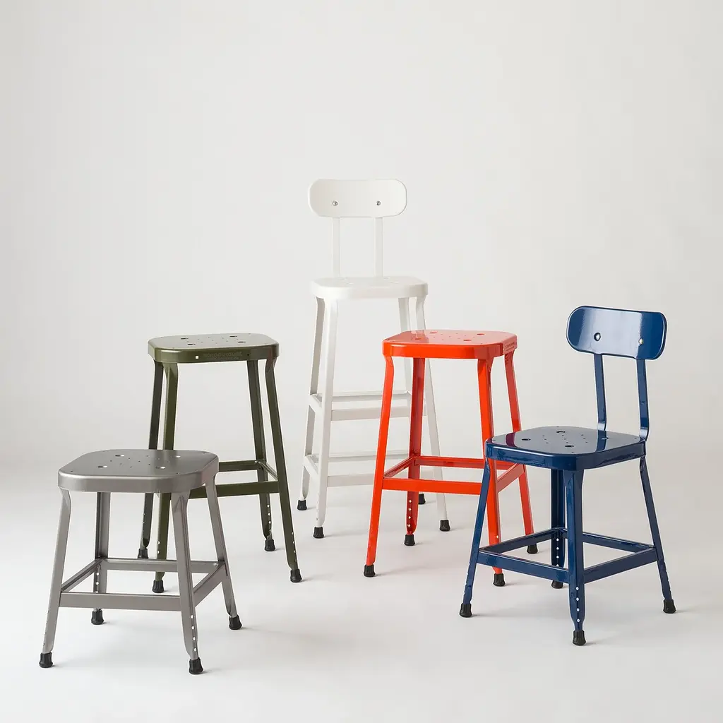 Built to last, this industrial-strength welded steel stool is ready to be put to work in any room of the house. An update of a classic, the design prioritizes comfort with an ergonomic stamped seat and molded backrest. Rubber feet help protect floors and resist skidding. Embossed with our iconic Schoolhouse mark and available in a variety of finishes. A Schoolhouse Original. Shop the Utility Stool Collection Get Finish Samples
