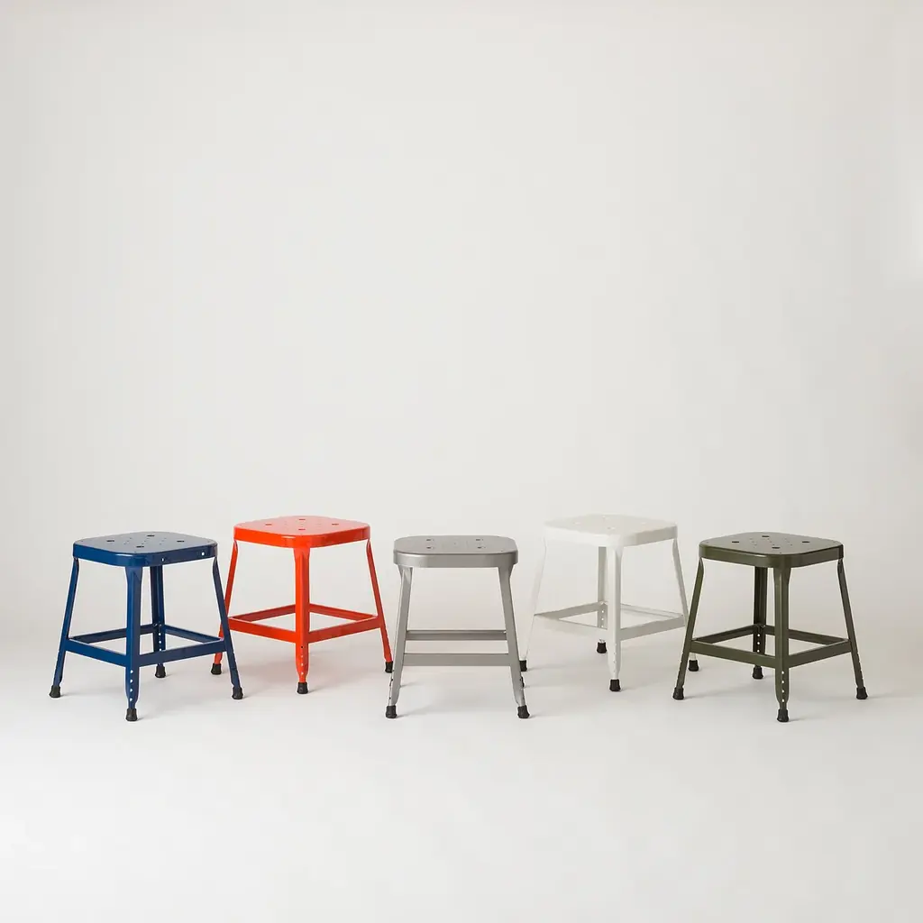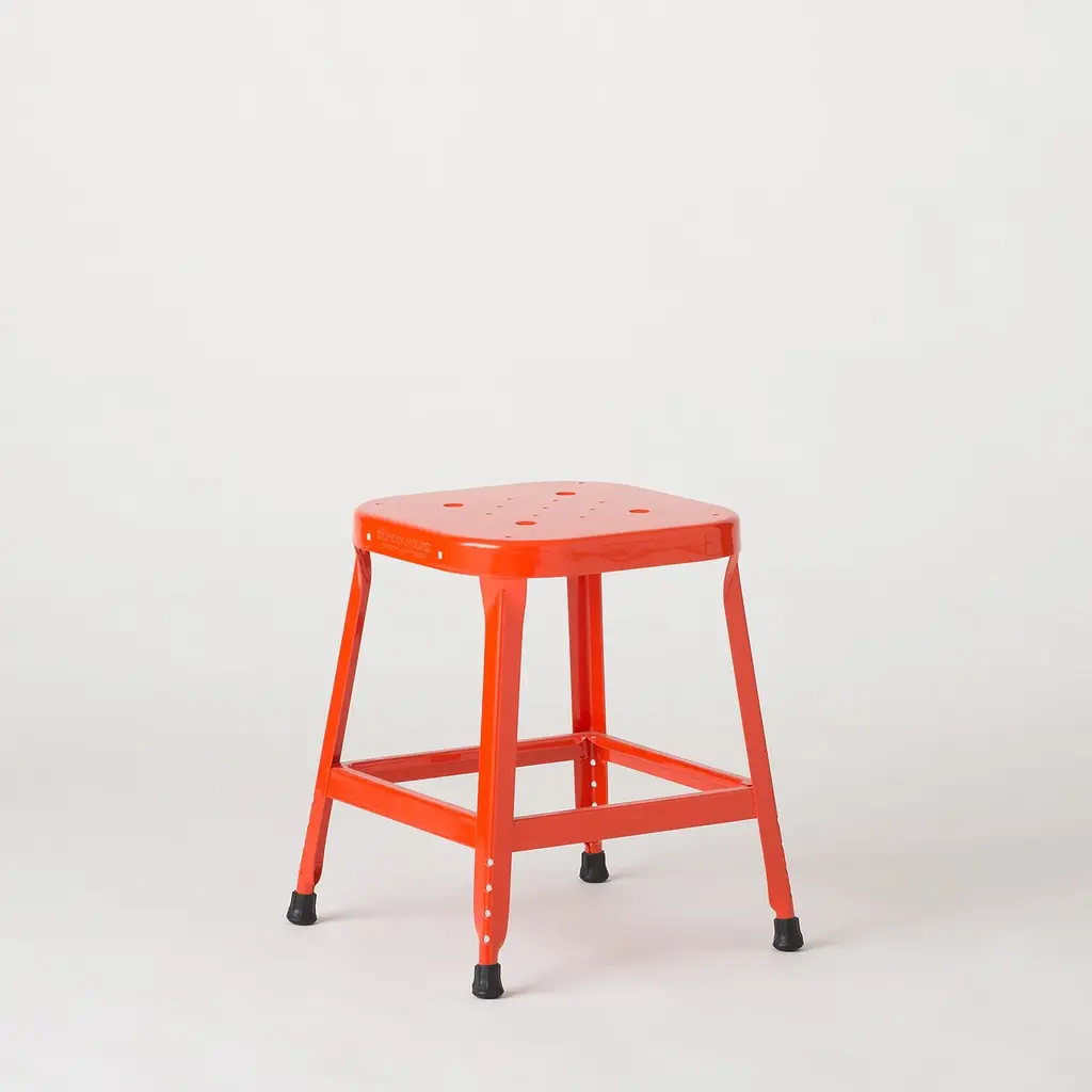 Built to last, this industrial-strength welded steel stool is ready to be put to work in any room of the house. An update of a classic, the design prioritizes comfort with an ergonomic stamped seat and molded backrest. Rubber feet help protect floors and resist skidding. Embossed with our iconic Schoolhouse mark and available in a variety of finishes. A Schoolhouse Original. Shop the Utility Stool Collection Get Finish Samples