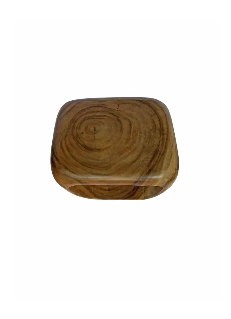 A wonderfully sculptural round side table or stool. Its neutral pigment makes it perfect for any space. A uniquely sculptural and versatile piece certain to invoke conversation. It was crafted from a solid block of mango wood and has a smooth texture and finish. The wood texture present on all sides adds to its charm.