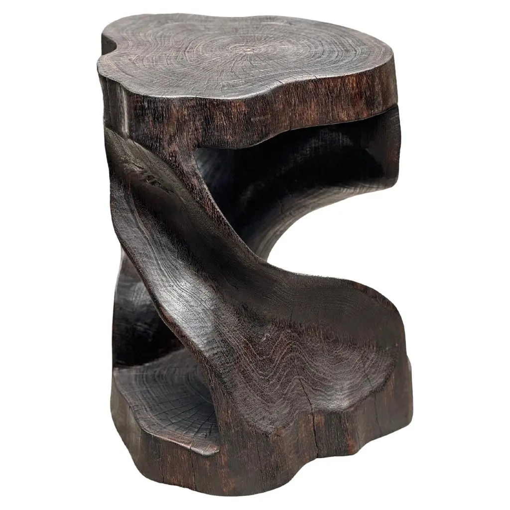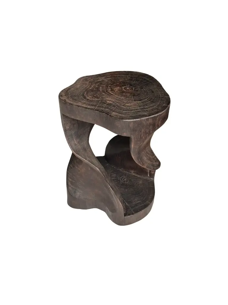 Sculptural Stool Carved From Solid Mango Wood Modern Organic