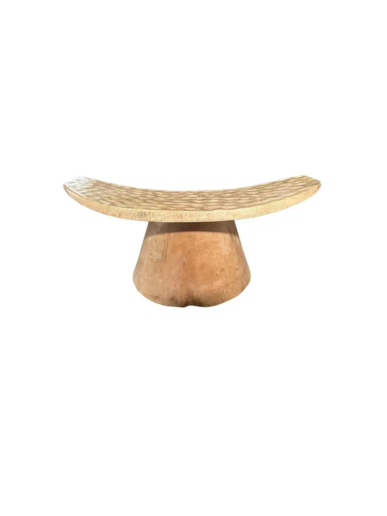Sculptural Stool With Curved Seat & Hand Hewn Detailing, Natural Finish