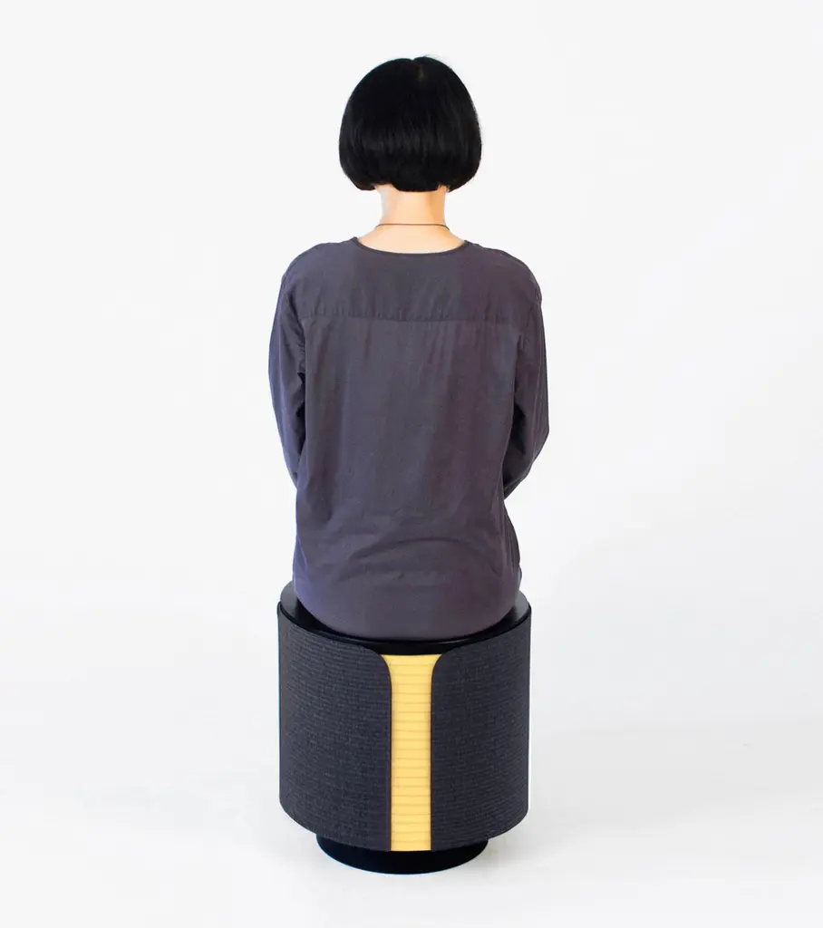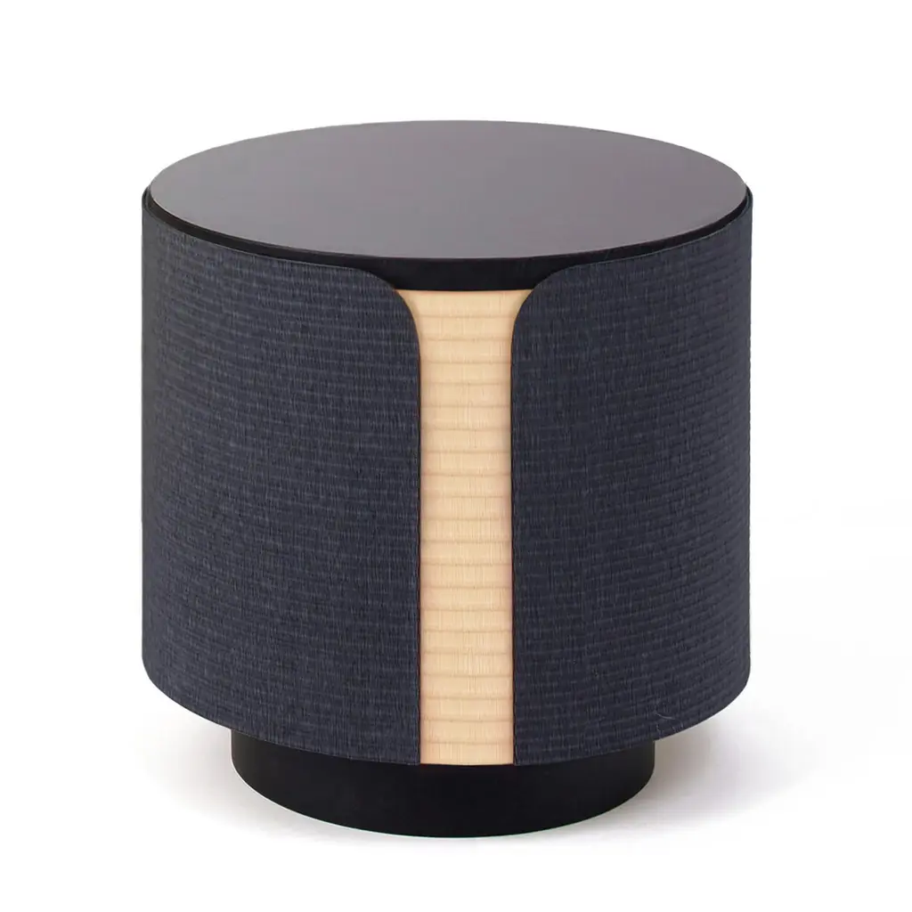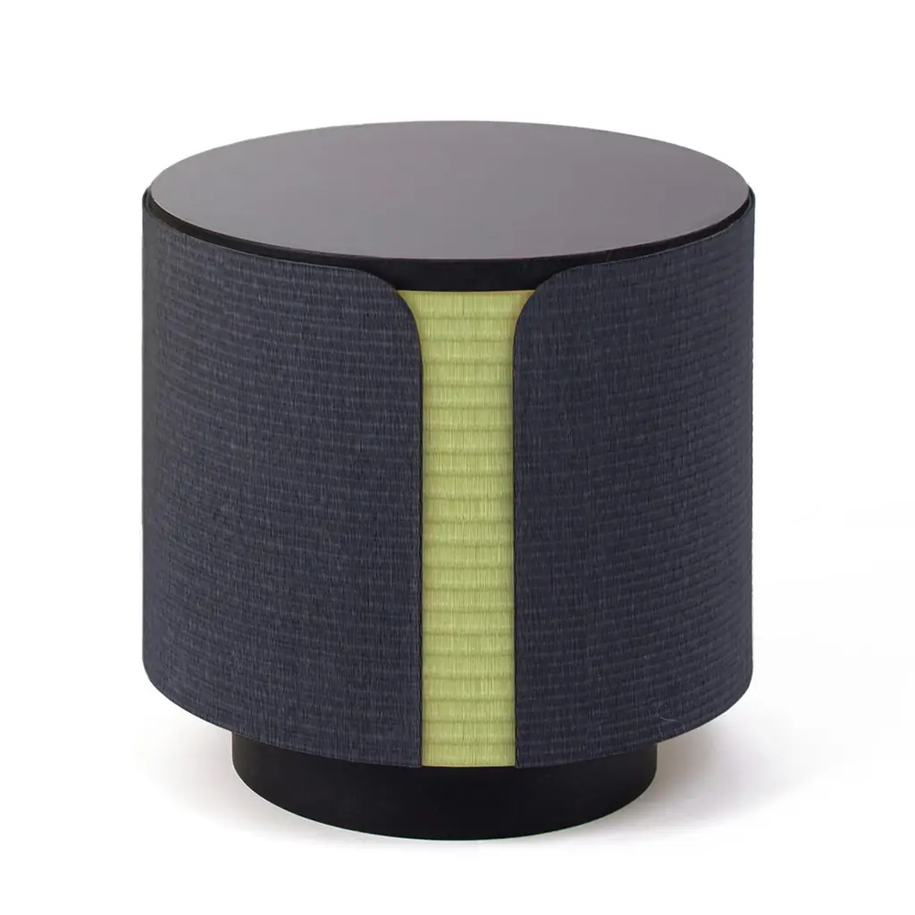 Seijaku stool by Astrid HautonDimensions: H 39 x D 39 x H 40 cmMaterials: woven washi paper, painted wood, waxed black Valchromat.« Seijaku », in Japanese, express the idea of tranquility, stillness and solitude. The Seijaku stool has beendesigned to embody quietness in its minimal shapes, yet with a high focus on strong lines and fine details.The presence of the Seijaku stool is an invitation to explore the feeling of harmony into silence.The Seijaku stool is part of the Kawayama collection.Made from the weaving mat that covers the tatamis, the Kawayama collection takes this iconic element ofthe Japanese culture to a new dimension. Traditionally flat and straight, the tatami suddenly expands involume and curves, to become luxury homeware and contemporary furniture. Each object is made by hand,following a unique and meticulous process, which reveals the surprising structural properties and sublimatesthe vibrant effect of this woven material.The Seijaku stool comes in different colour combinations and has a removable lip.Inspired by the Asian culture and the practice of Zen, Astrid Hauton creates high quality objectsand decors, with clean lines, which invite contemplation and inspire inner calm.After graduating from ENSCI-Les Ateliers, Astrid chose to work with artisans in Vietnam, Laos andCambodia, where she collaborated with NGOs for 3 years. In contact with them, she discoveredlocal know-how and materials, and learned about oriental wisdom.Back in Paris, she created the studio in 2015 and joined the Ateliers de Paris. Following herartistic residency in Kyoto in 2017, Astrid started to study Zen philosophy and Feng-Shuiprinciples, which enlighten her on the art of living a harmonious life.Her approach to design consists of considering “interior” and “interiority” as intrinsically linked. Tocombine the art of living “at home” with the art of living “in ourselves”, in order to better inhabitthe world.Astrid Hauton Studio explores know-how and sublimates materials, to create collections ofsingular objects in limited series. The studio collaborates with prescribers, architects and brands,to jointly design soothing spaces thanks to tailor-made creations.