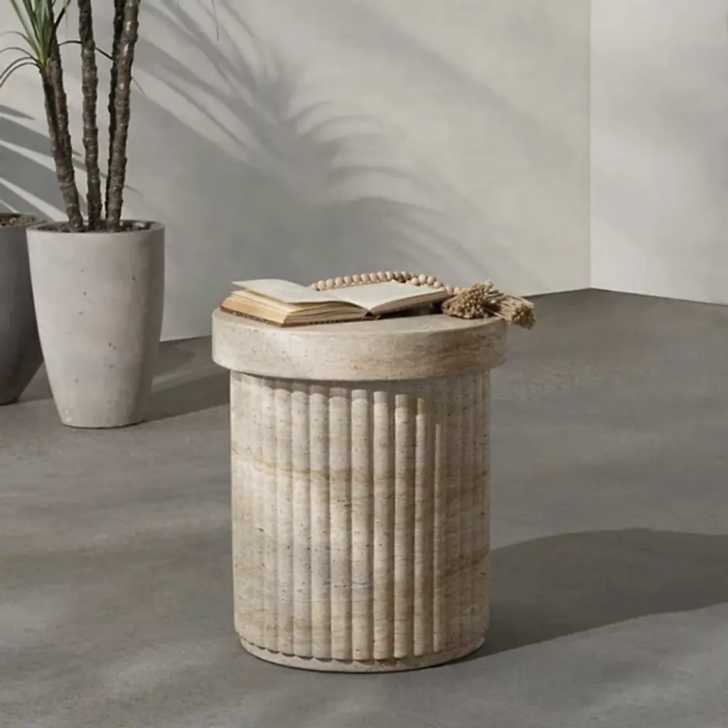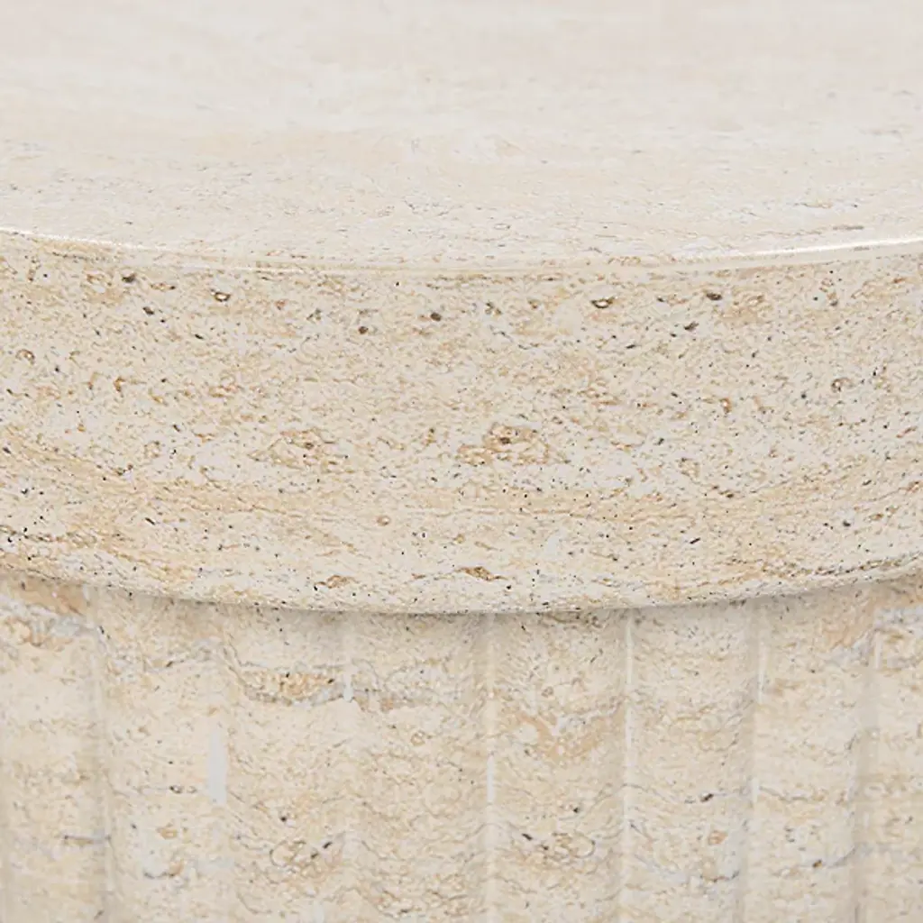 The Selah Outdoor Stool from Classic Home features a glass fiber-reinforced concrete construction that withstands outdoor elements while maintaining a lightweight profile for easy repositioning. Handcrafted details create subtle texture variations across the cylindrical surface. Its dual purpose allows the piece to function as both comfortable seating and a practical side table, depending on immediate needs. Weather-resistant properties ensure year-round durability, while the water-based coating provides additional protection against moisture and UV exposure, allowing this multifunctional stool to work well on balconies, patios, and by the pool.
