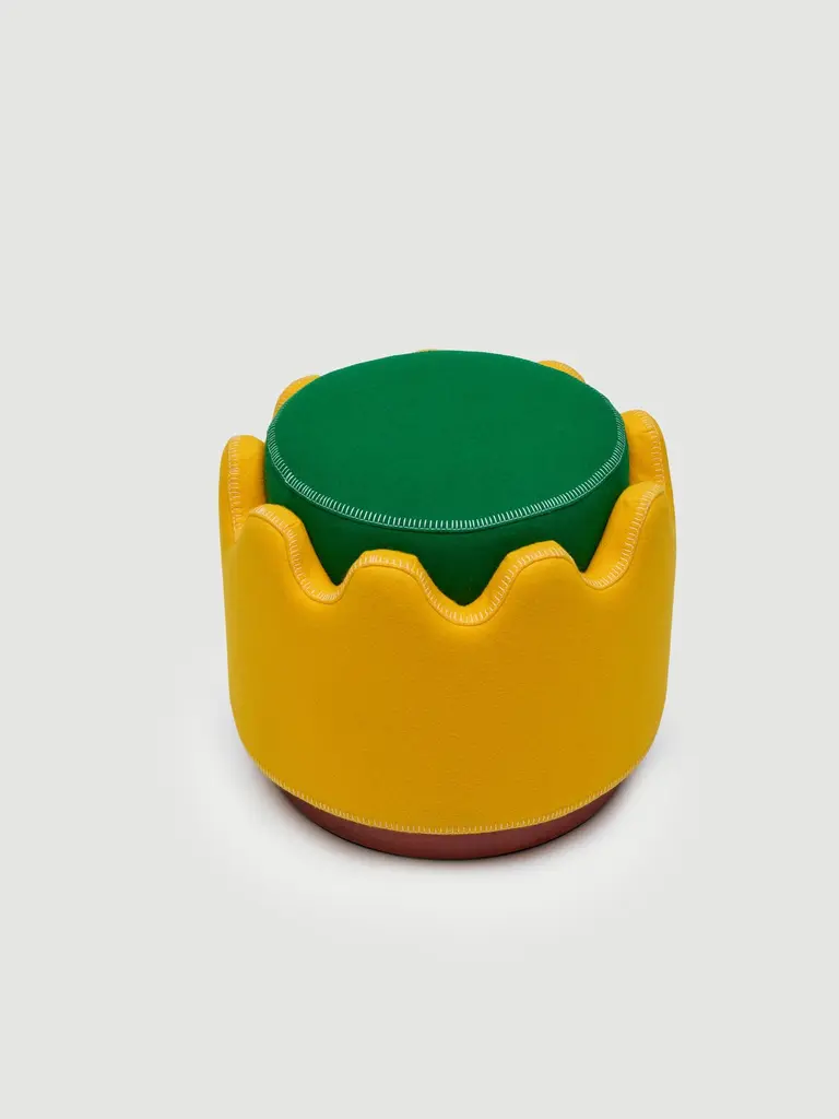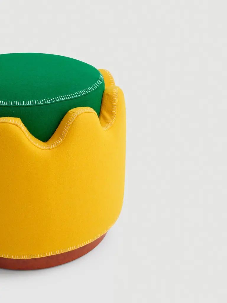Semo Stool is a multifunctional pouf, storage and a foot rest for Semo Armchair. Semo resembles a soft baseball hand glove which offers great comfort and pleasure. It also has a feature stitch detail on the upholstered arms and seat. The round base part is made of polished burl wood veneer. Semo is available in different colors and wood finishes.