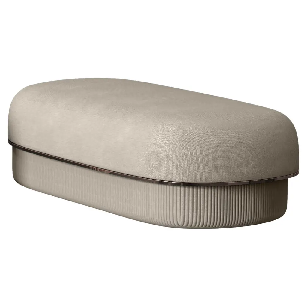 The Serene stool is a simple and versatile complement.A classy and sophisticated shape that can be used either as a stool or as a coffee table, for a discreet yet elegant result.Show in upholstered with Manza 04 and details Antique Brass MT01 & Solid Wood SW08 Satin Open PoreEssence Collection celebrates the timeless beauty of organic shapes by combining painted woods, natural stones, and a palette of neutral tones to create a luxurious aesthetic.Our collection embodies the simplicity of luxury, where every detail is carefully selected to convey sophistication and quality. Each piece of furniture is a masterpiece of craftsmanship, reflecting the passion and dedication of our artisans.The passion to create high-quality luxurious furniture, capable of providing emotional experiences is the reason for our existence and continuous evolution.Experience the unique atmosphere created by our Essence Collection.