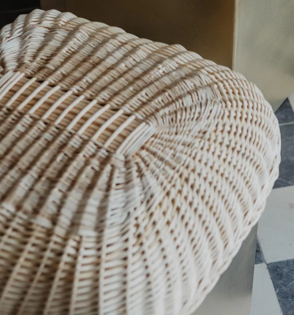 Set Of 2 Boudoir Stools by Mylene NiedzialkowskiDimensions: Ø 35 x H 45 (each). Materials: Brass and wicker.Stools with brass, seat in fine wickerwork, entirely handmade. Hand-woven black wicker from Villaine.All our collections start from an exploration, from a curiosity for the material, from the discovery of the gesture to work it, from the application to master it and finally, from the care to arrive at the object that you discover while browsing these pages. Georges adorns himself with rare fibers and raw materials to carefully manufacture, entirely by hand, sincere objects and other numbered masterpieces, always in a reasoned approach.All our objects and lights are handmade in our factory in Béarn, in Méritein. In this castle, our teams use simple and raw materials sourced as close as possible and transformed on site. A manufacturing process that is economical in resources, generous in know-how and respectful of the environment.At the basis of each object, there is a permanent desire to experiment. To understand matter, its constraints, its properties. And to transform it, taking care to only work on it as minimally as possible.From this desire to leave the raw material as raw as possible, Mylene Niedzialkowski draws and designs pieces with minimal lines, with singular and assertive irregularities.Sailing between the South West of France and Paris, fascinated by arte povera and popular arts, Mylene Niedzialkowski strives to accumulate local raw materials in her workshop, from neighboring regions, basic and common materials, ordinary and daily, both household and industrial or even from production residues. From this collection which oscillates between material library and cabinet of curiosities, simple objects with clean lines are created, sometimes everyday, sometimes with an essentially decorative function.