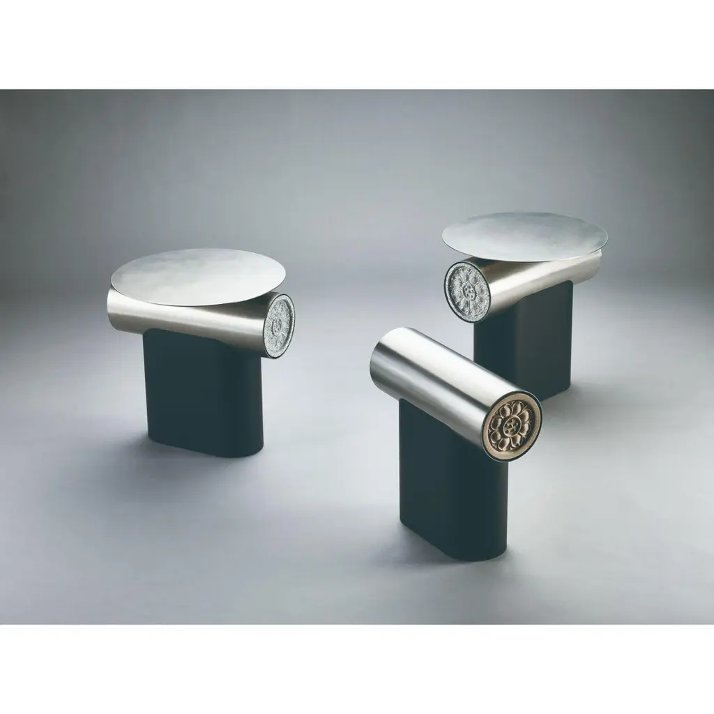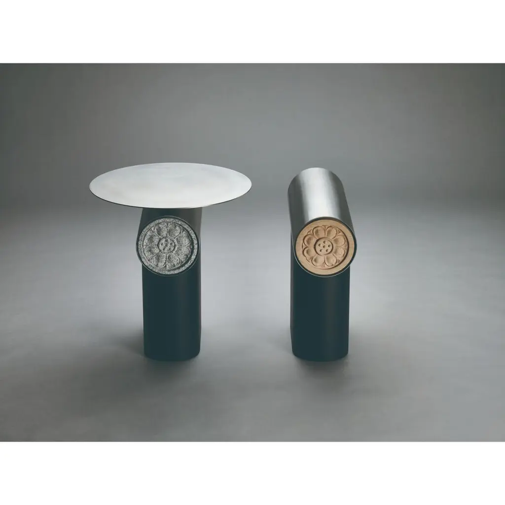 Set of 2 Heritage Gwol stool and table by Lee Jung HoonDimensions: D46 x W44 x H45cm and D46 x W16.3 x H43.5cmMaterials: Stainless Steel, Steel, Granite, Maple.The Heritage series, created by designer Lee Jung-hoon is a collection of sculptural modern furniture. The designs are inspired by the characteristic forms, colours and appearance of traditional Korean architecture. Borrowing references from the archaic Hanok, which is the traditional Korean housing, the designer has attempted to reinterpret its beauty and vibe from a contemporary perspective.Lee Jung-hoon is a Korean craft and furniture designer who essentially draws inspiration from Korean heritage to create contemporary sculptural pieces that embody latent symbolism and double as practically usable objects.Tradition is a gene-like thing, which goes through evolution and degradation with the times. Although it is now a turbulent time in tradition,the unique gemstones inside of it remain unchanged. he wants to discover and explore these stones to find the formation thatencompasses tradition and modern times.He is working on finding new types of furniture and decorations under the theme of Korean tradition, and at the same time wants to designthe furniture that society needs today.