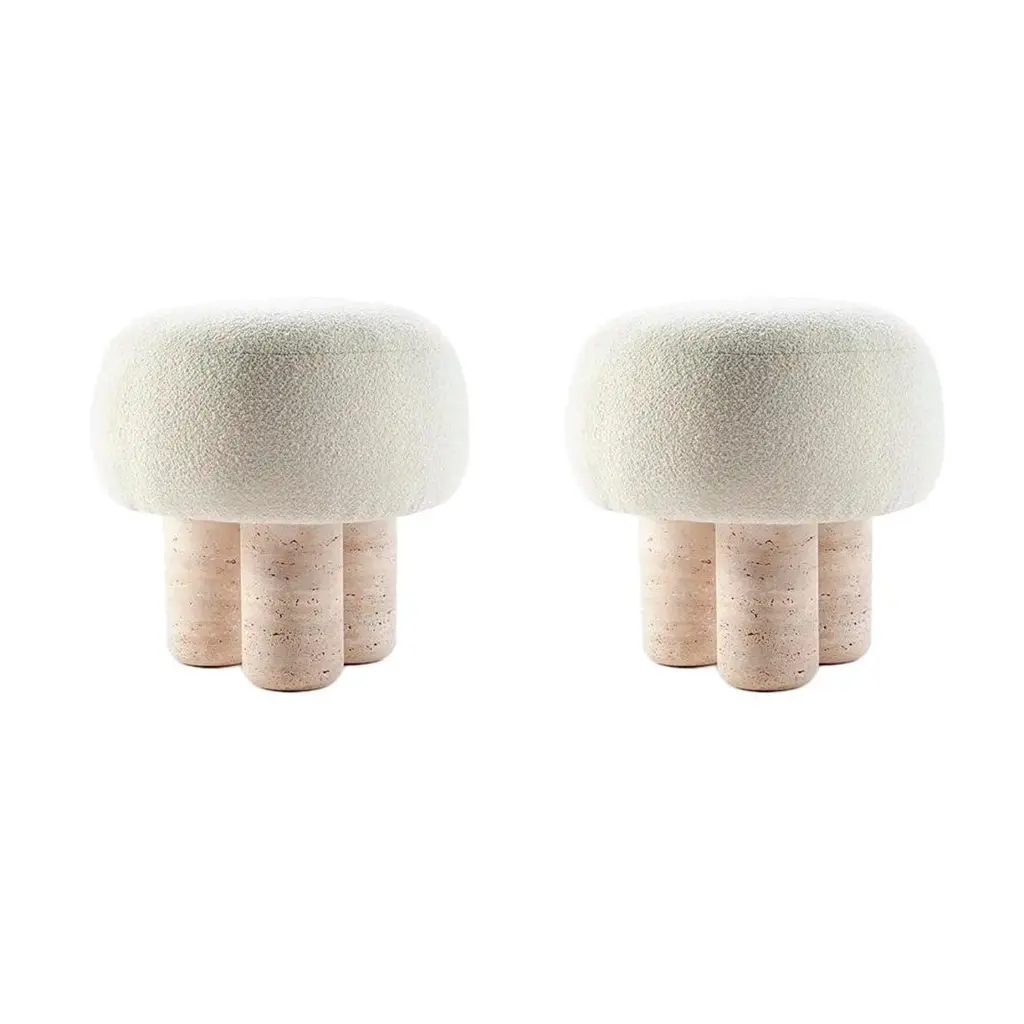 Set of 2 Hygge stool by CollectorMaterials: Structure in solid oak wood. Upholstered in Pierre Frey fabric.Legs: TravertinoDimensions: 45 x H 44 cmDepending on the material the price may vary.Hygge collection is inspired by contemporary architecture in Portugal that Speaks of its Romanesque past by honoring the antiques geometries, such as the arch and the column. Saccal Design House chose to reflect these elements of the past in the collection but in a contemporary way.The Collector brand aims to be part of the daily life by fusing furniture to our home routine and lifestyle, that’s why we’ve designed our pieces with the intention to embrace diverse styles and to blend in inside anycontemporary setting.Described by our motto: “built to fit a good IDEA.”, this wide range of product typologies were designed to work in diverse layers of importance. It can work as a center piece of the house, with strong personality or just complementing the background by gently blending in. The result is a clean-lined furnishing collection that can easily be customized to work specifically and according to each unique need, reflecting essentially our traditional methods of furniture manufacturing with accurate Industrial Production methods.We strive to achieve the best quality possible by selecting the best materials and by the constant development of our production processes and manufacturing partnerships.