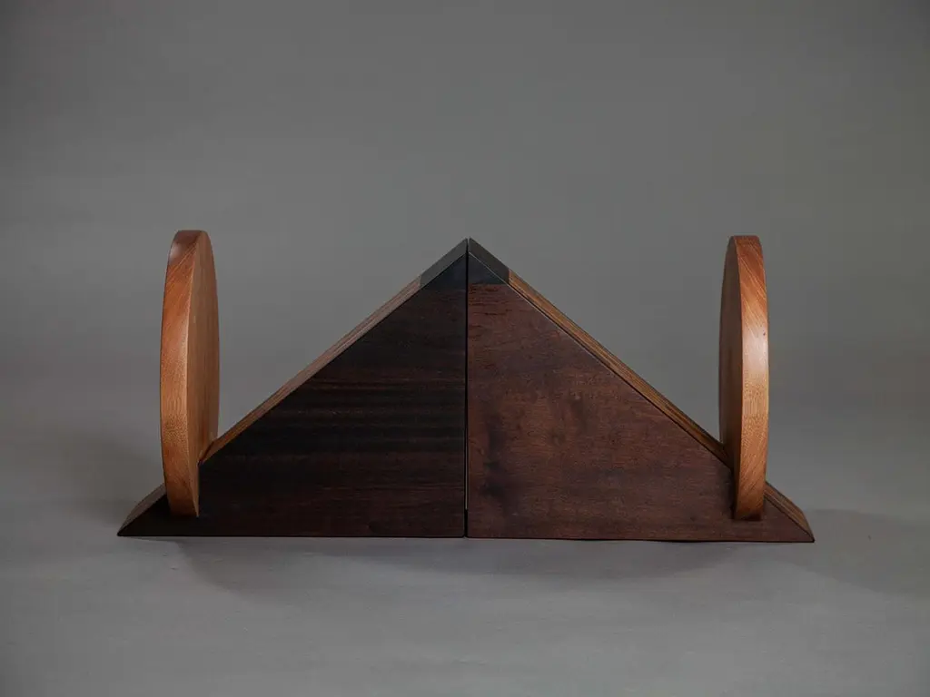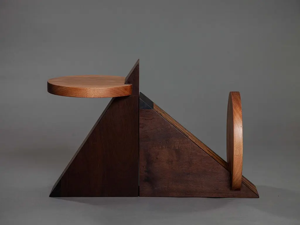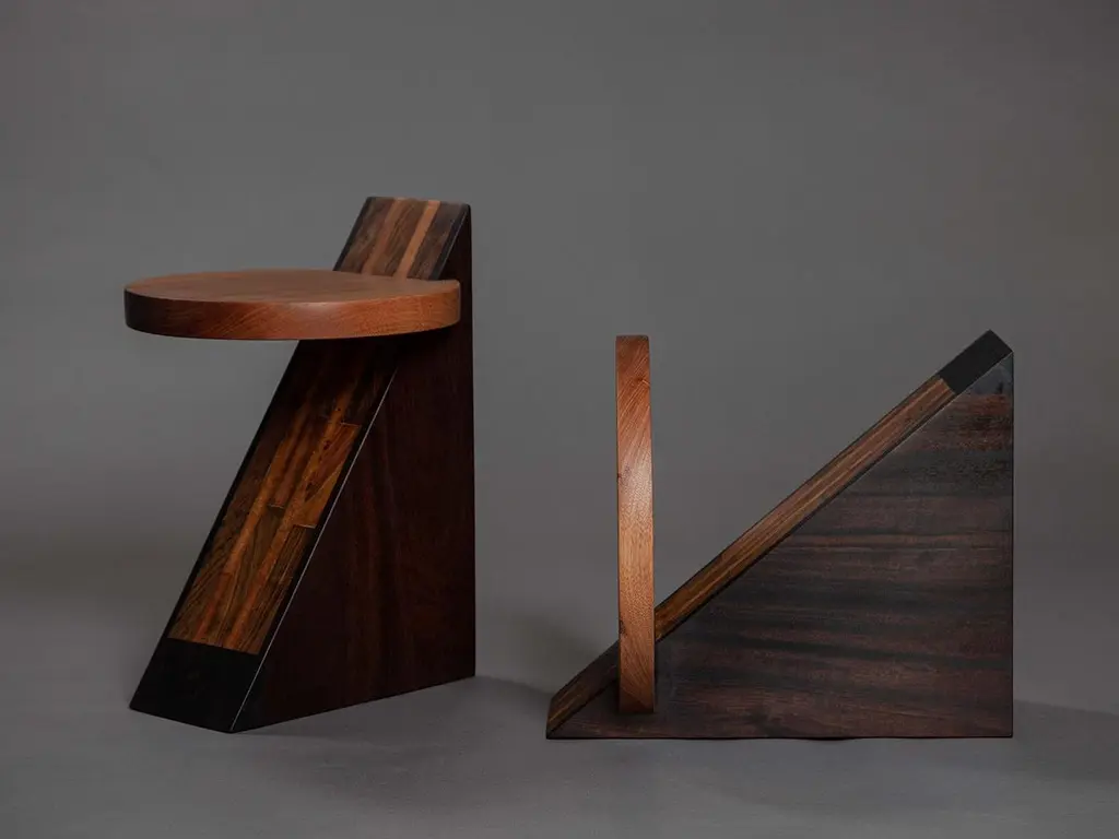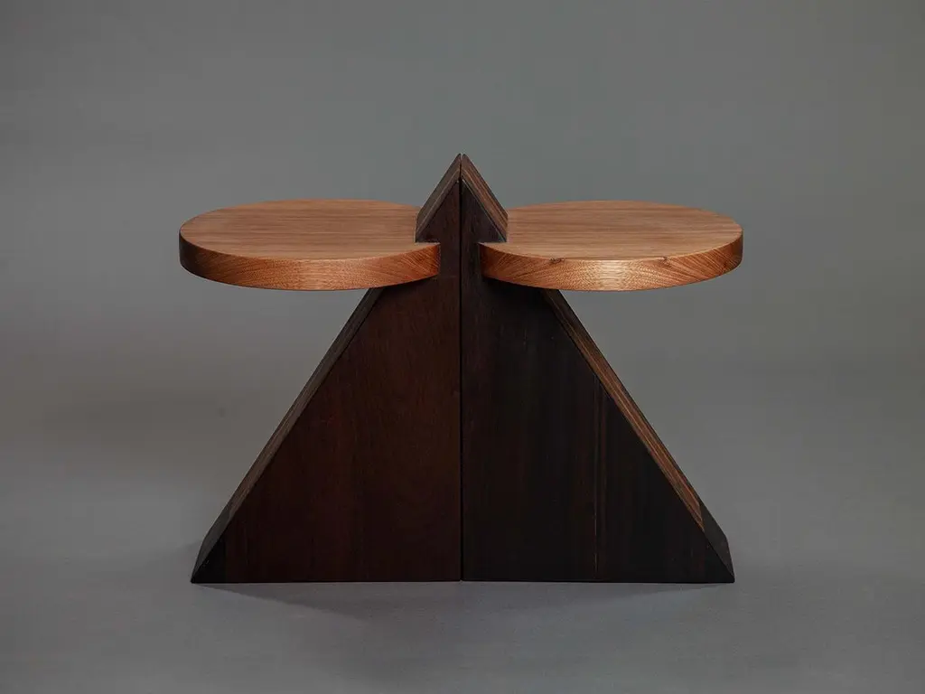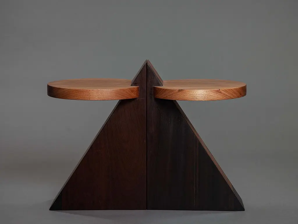 The Inácio stool plays with geometric shapes, aiming to create a sensation of movement and fluidity. It is made entirely from leftover solid wood from other projects, which would normally be discarded. Can also be used as a side or coffee table. As they are natural materials, wood, straw and leather may have different tones and textures than those shown in the photos.